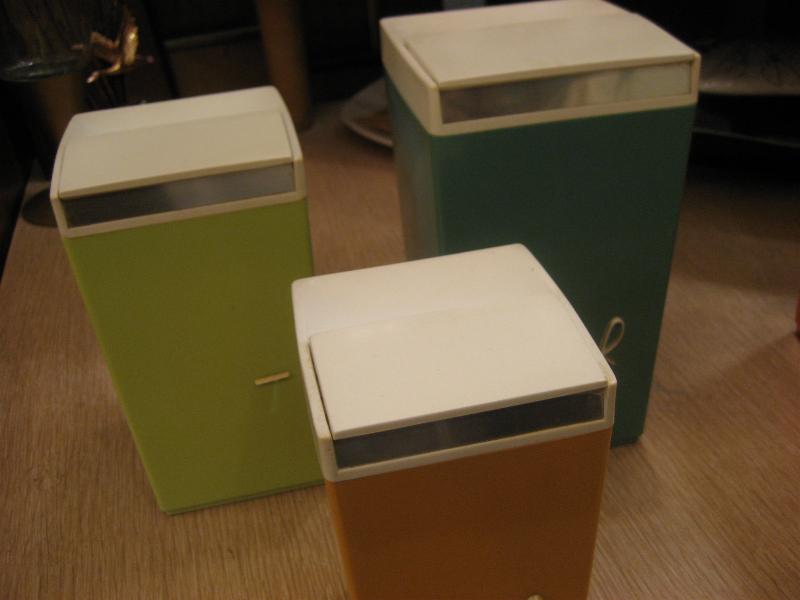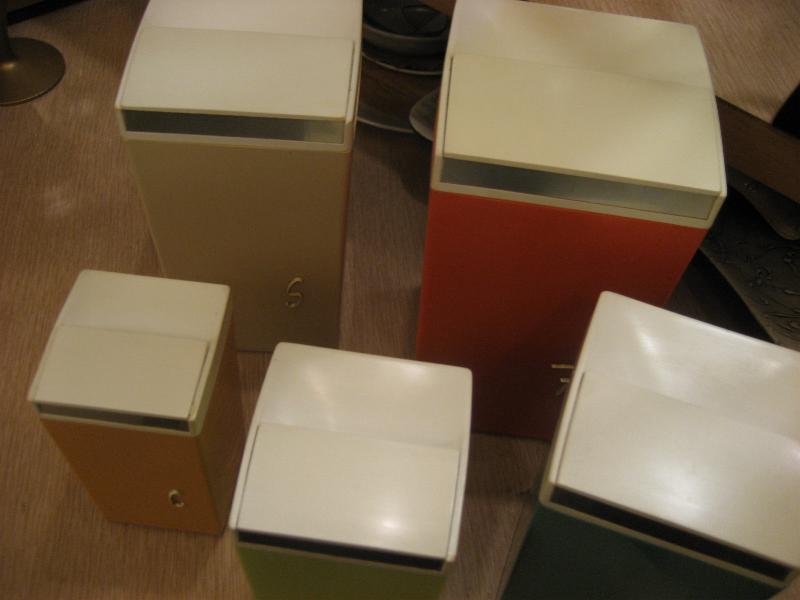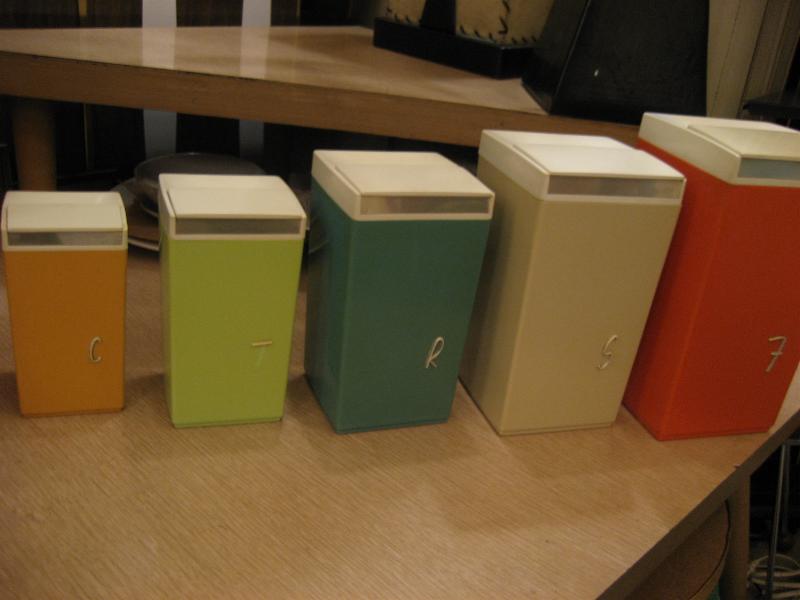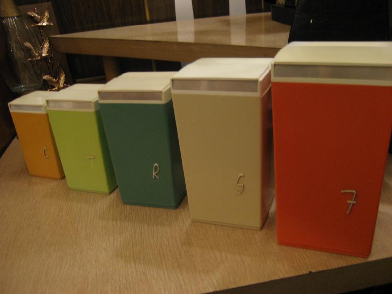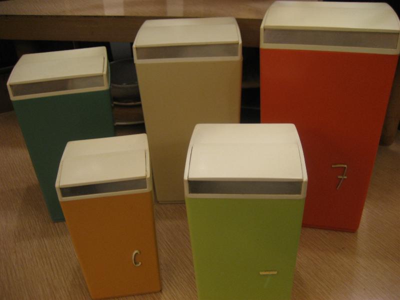 | ビンテージキャニスターセット / 50年代 USA / Nally Ware from Australia. レアな"Nally"社の5カラーキッチンキャニスターセット。大きなサイズにスッポリ収納OKなのでとっても便利。Flour(小麦粉), Sugar(砂糖), Rice(お米), Tea(紅茶), Coffee(コーヒー) の5種類ストック&カラーリングがとてもキュート! クールでGOODなビンテージキッチンピース! |