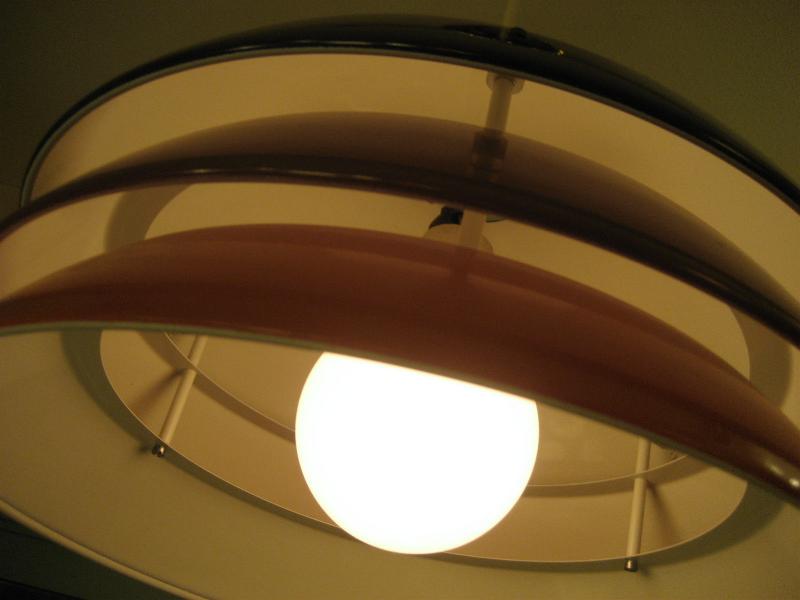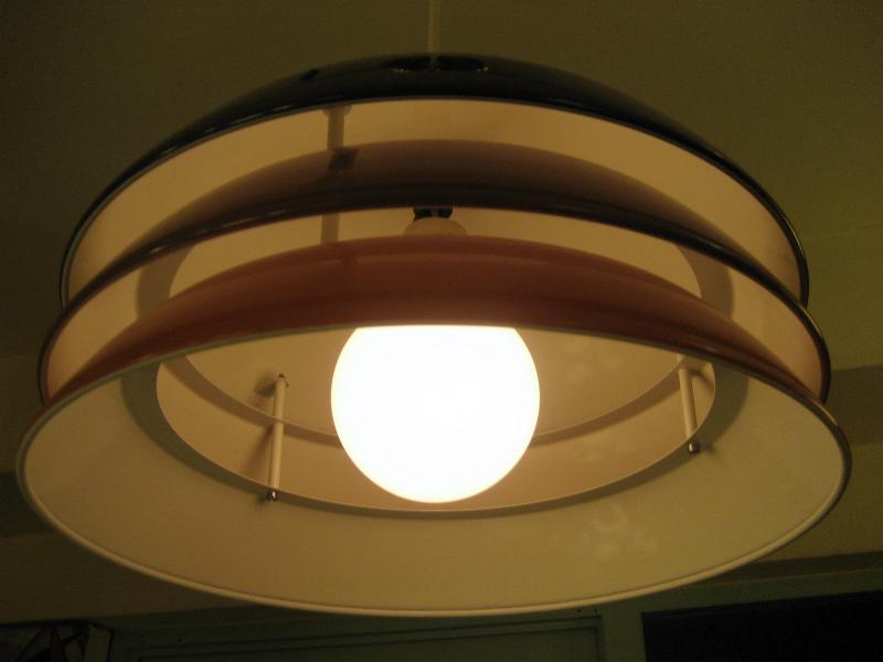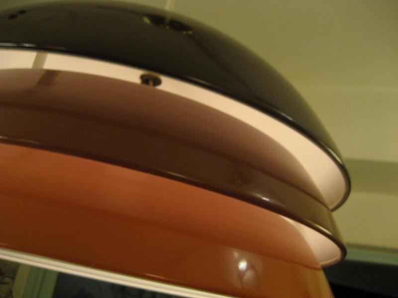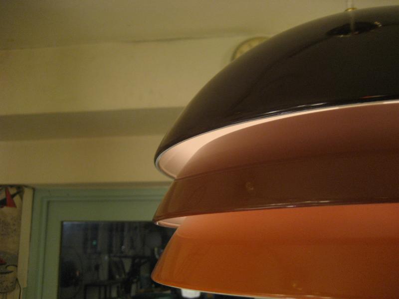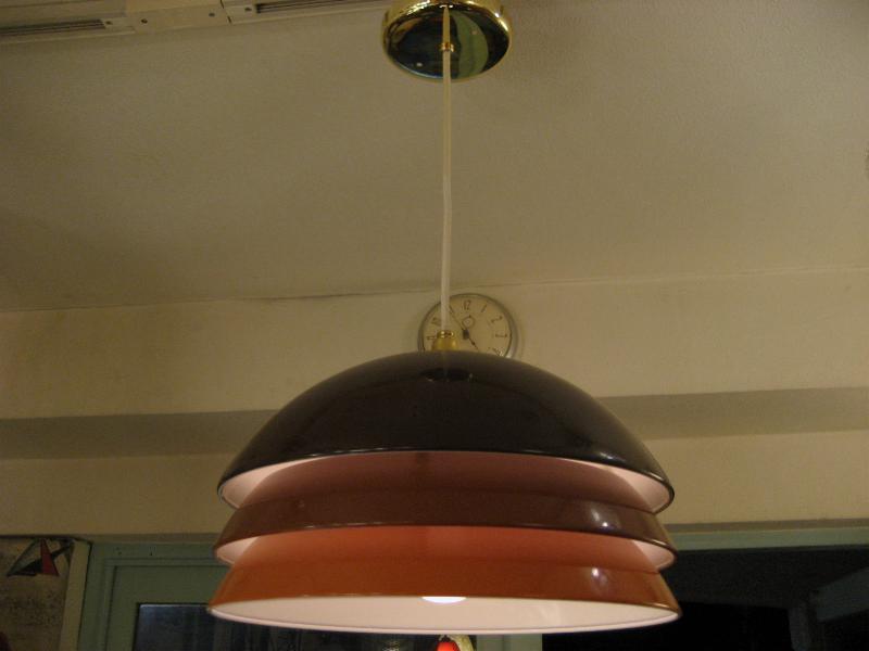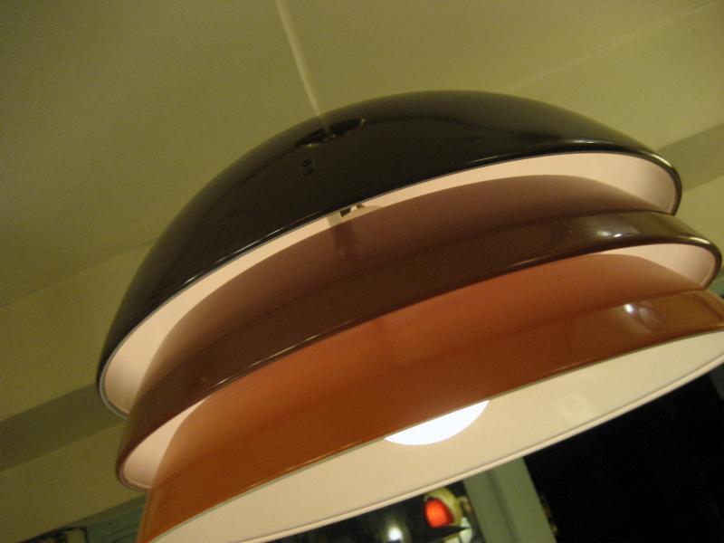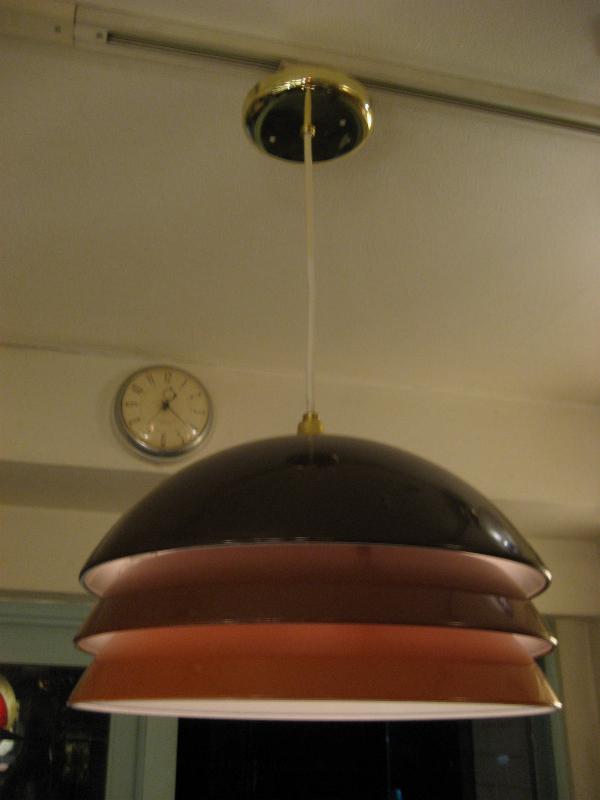 | アトミックモダンペンダントランプ / 70-80年代 USA ブラウン系グラデカラー3段メタルシェードのアトミックシェイプなシーリングランプ。スペーシーなデザインでシェード間からもれる明かりが良い雰囲気。。。 クールでGOODなモダンライティングピース! 電源は引っ掛けシーリングに交換済みですのですぐに設置可能です。 |