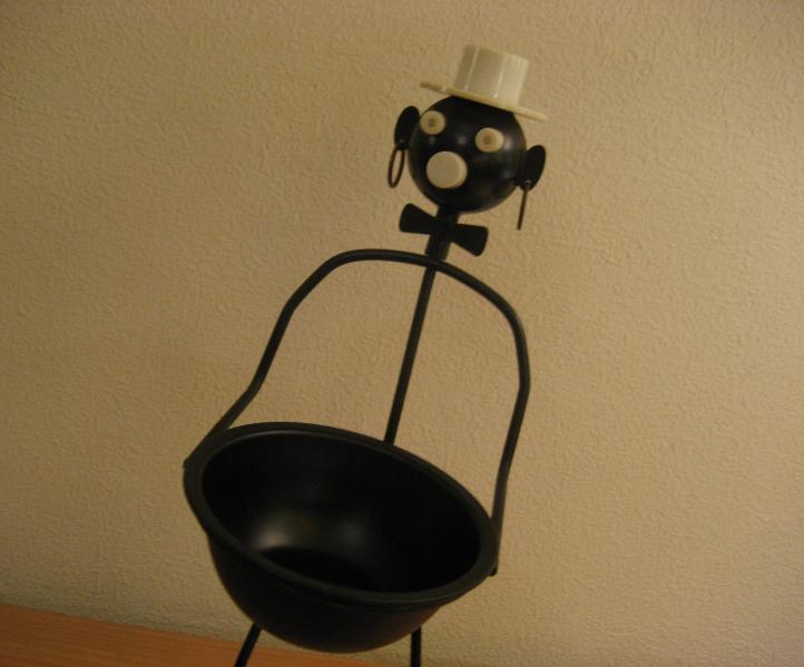 | ビンテージブラックアイアン置物 / 40-50年代 USA. ブラックワイヤーのビンテージシェルフデコ。フロントにブラックペイントのメタルディッシュを抱えて立っているデザイン。ブラックベースに白いハットに黒の蝶タイで耳にリング。アクセサリーやコイン・KEYなどの小物入れやディスプレイなどにおススメのクールでGOODなビンテージデコレーションピース! |