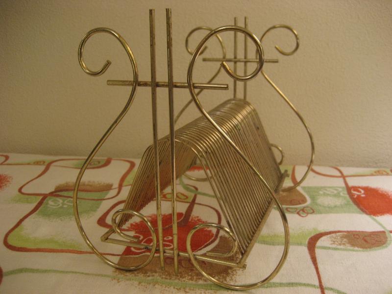 | ビンテージレコードラック / 50年代 USA. ブラスメイドのレトロなアナログレコードラック。音符デザインの両サイドフレームがクールでGOODなビンテージデコレーションピース! |