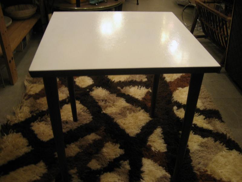 | ビンテージモダンスモールテーブルシェルフ / 50-60年代 USA シンプルで合わせやすいホワイト天板のフロアテーブルシェルフ。化粧合板トップにウッドのブラウンカラーテーパード4本レッグ。ネジ込みタイプレッグだから簡単に外して片付けることも可能なのでとっても便利。。。 お部屋のコーナーやソファ、チェアサイドにモダンでGOODなビンテージフロアピース! |