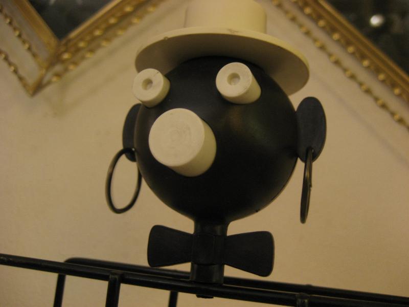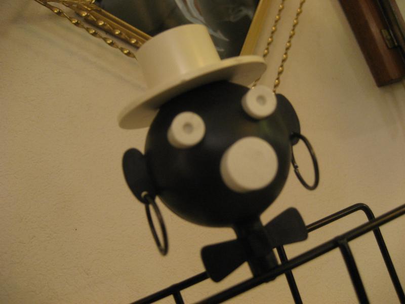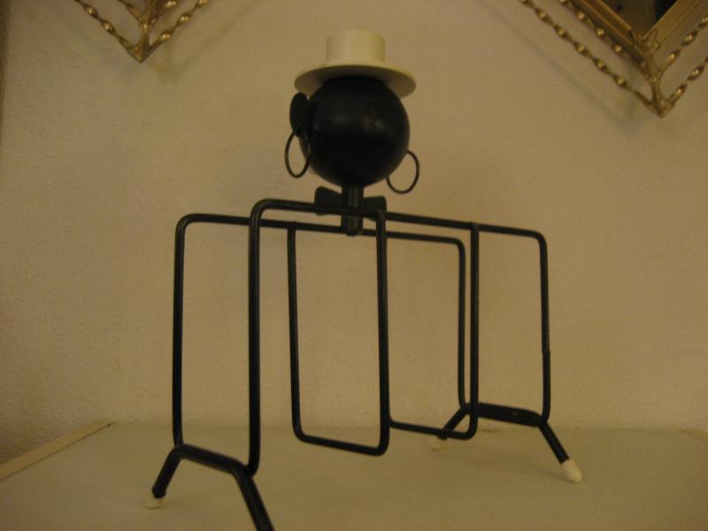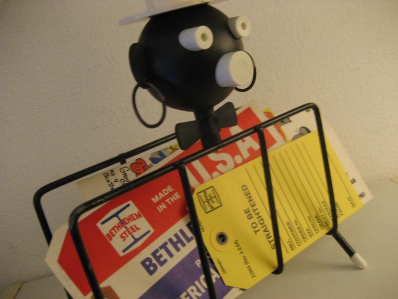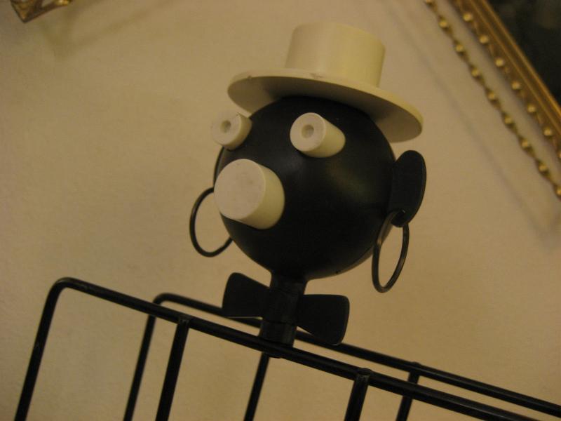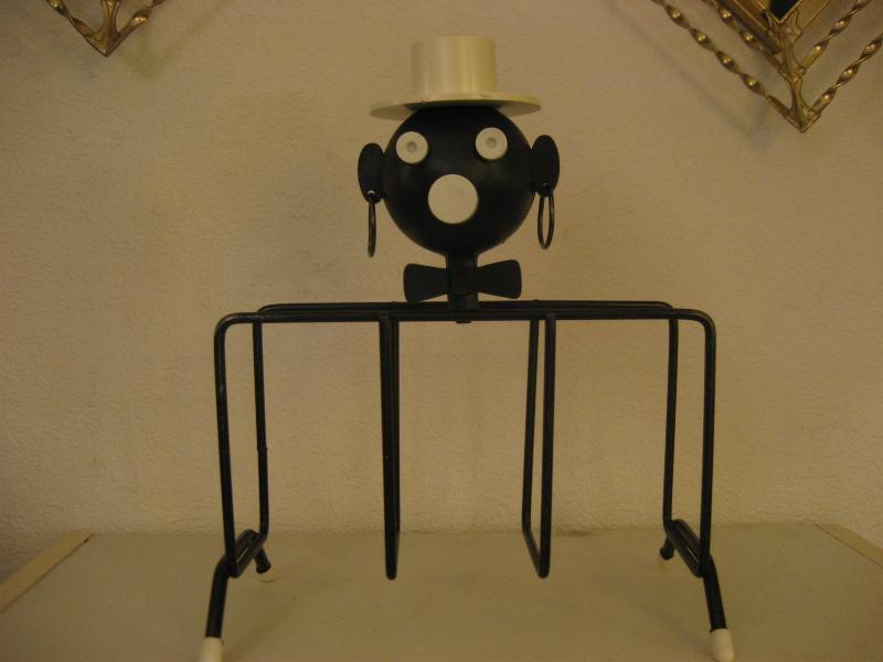 | ビンテージブラックアイアンホルダー / 40-50年代 USA. ブラックワイヤーメイドのナプキンホルダーまたは、メールストックでしょうか。。。ブラックフェイスに白いハット、黒の蝶タイで耳にリング。ストックホルダーやディスプレイなどにおススメのクールでGOODなビンテージデコレーションピース! |