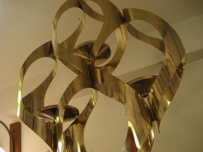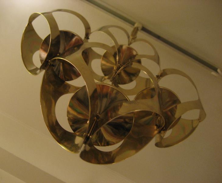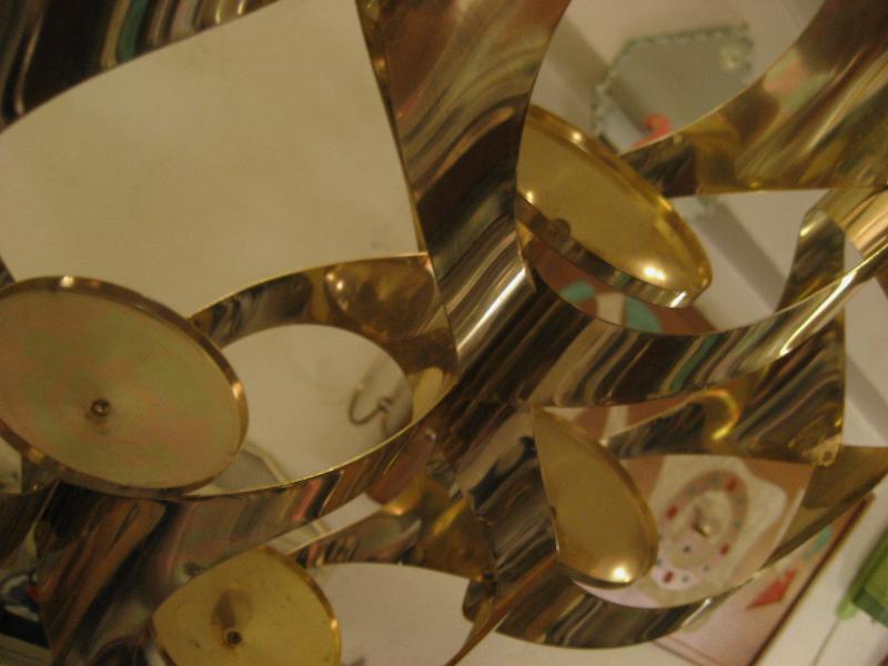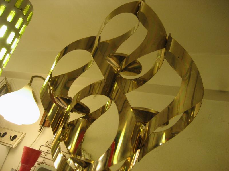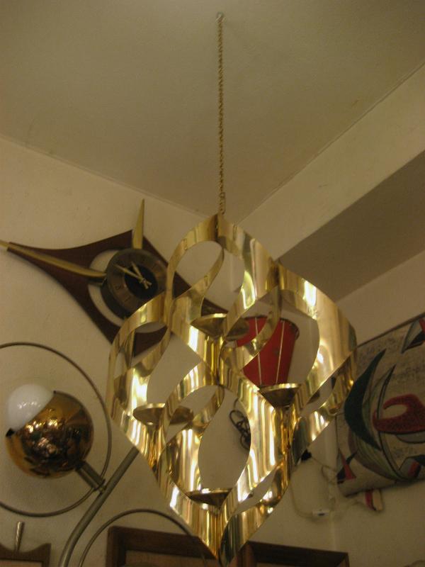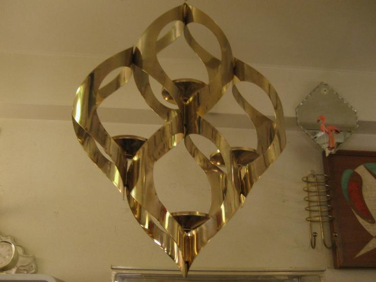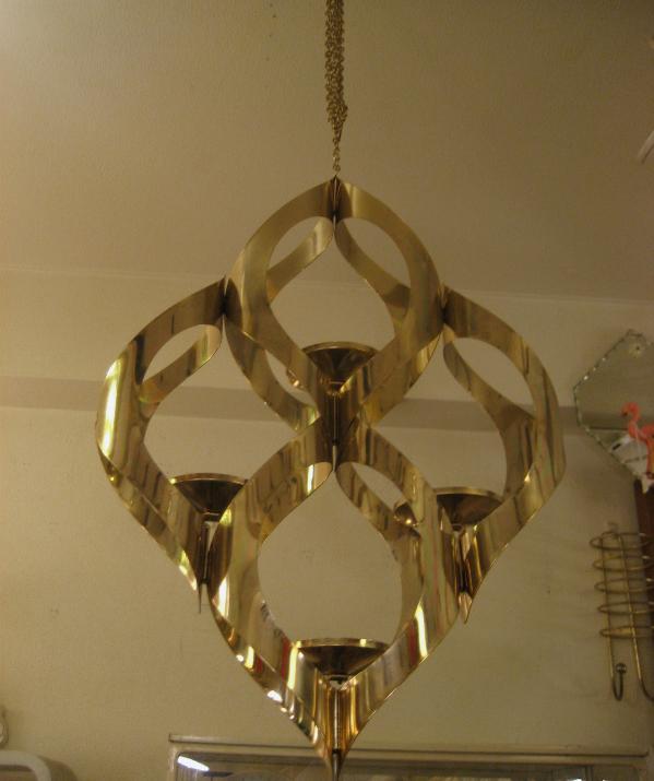 | ビンテージアトミックハンギングキャンドルホルダー / 50-60年代 USA. ゴールドブラスメイドのシーリングキャンドルホルダー。アトミックシェイプの変形シリンダーにそれぞれキャンドルトレイが付いています。チェーンシーリングでフックが付いているので長さ調節も結構自在です。実際にキャンドルで楽しむのも良いですがシーリングデコレーションとして楽しむのもおススメです。スプートニクランプなどともナイスマッチング! ハンギングモビールライクなクールでGOODなビンテージアトミックピース! |