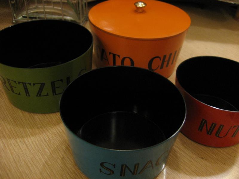 | ビンテージスタッキングスナックボウルセット / 50-60年代 USA. 4色カラーのスナックボウルセット。それぞれにチップス・プレッツェル・スナック・ナッツといかにもアメリカらしいタイトルが書かれています。大きなサイズにすべて収納OKなのでお片付けもとっても便利。。。 キッズ達のおやつタイムやラフなパーティータイムにもオススメですし、またアクセサリーなどちょっとした小物入れに使うのもおススメです! キュートでGOODなビンテージコレクティブルピース! |