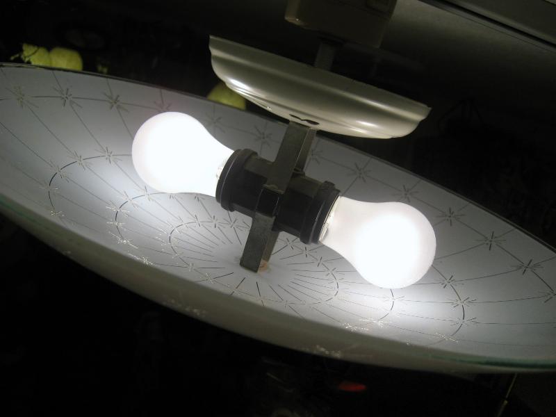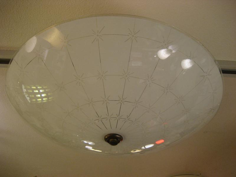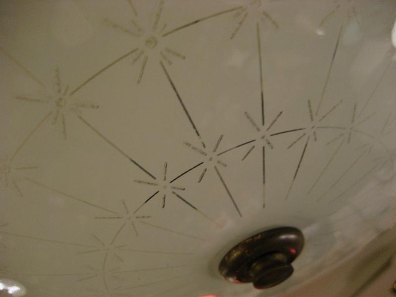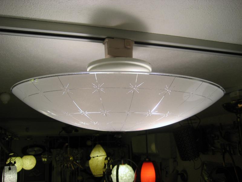 | ビンテージアトミックシーリングランプ / 50-60年代 USA スターバースト絵柄のガラスシェードにダブルライトソケットの天井シーリングランプ。メイン照明はもちろん、アクセント照明としてもクールでGOODなビンテージライティングピース! 電源は引っ掛けシーリングに交換済みですのですぐに設置可能です。 |