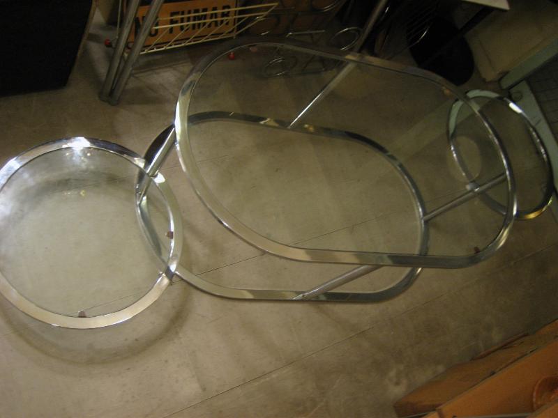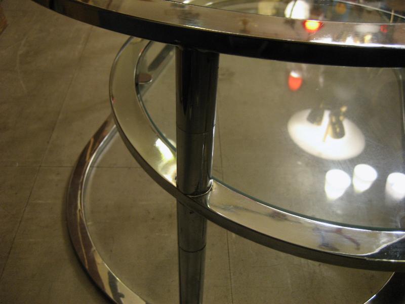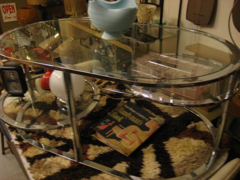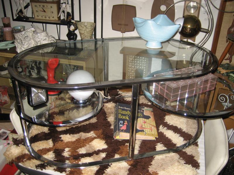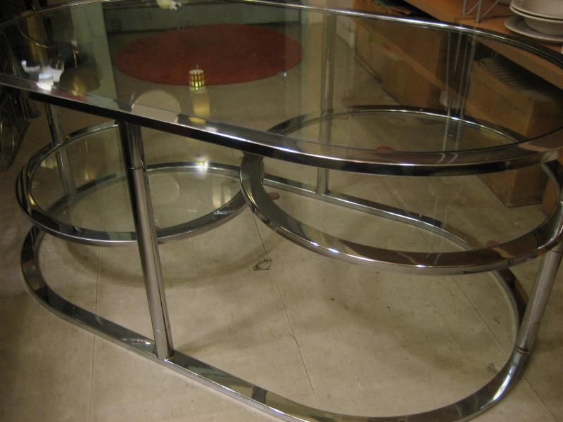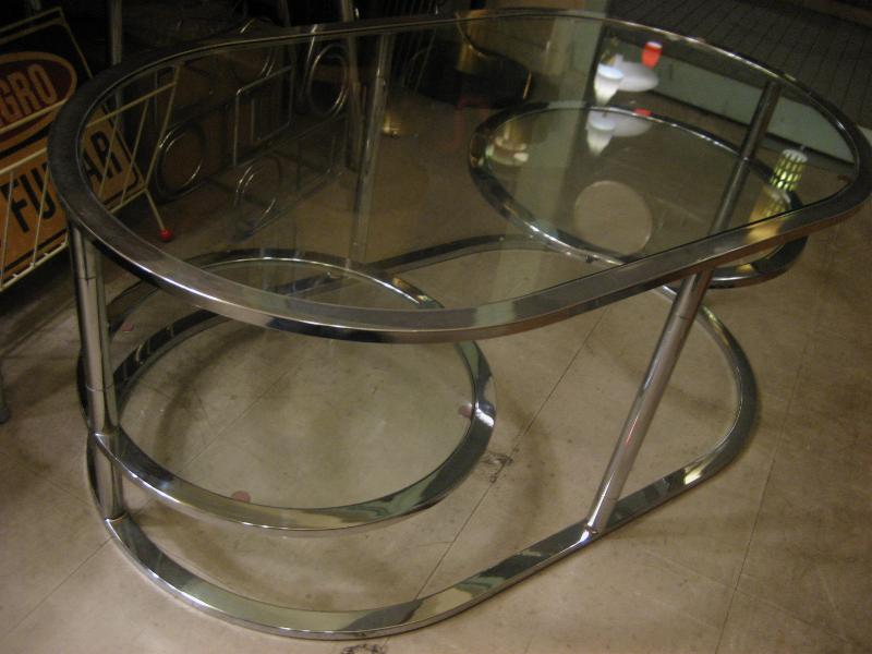 | ビンテージモダンシェルフテーブル / 70年代 USA. モダンなガラストップのオーバル(楕円)シェイプな3段シェルフテーブル。2段目と3段目がフレームを軸にウィングのように可動するので広げて使えて便利。。。 間接照明を使っても雰囲気が良く、ディスプレイシェルフとしてもおススメです! クールでGOODなビンテージフロアピース! |