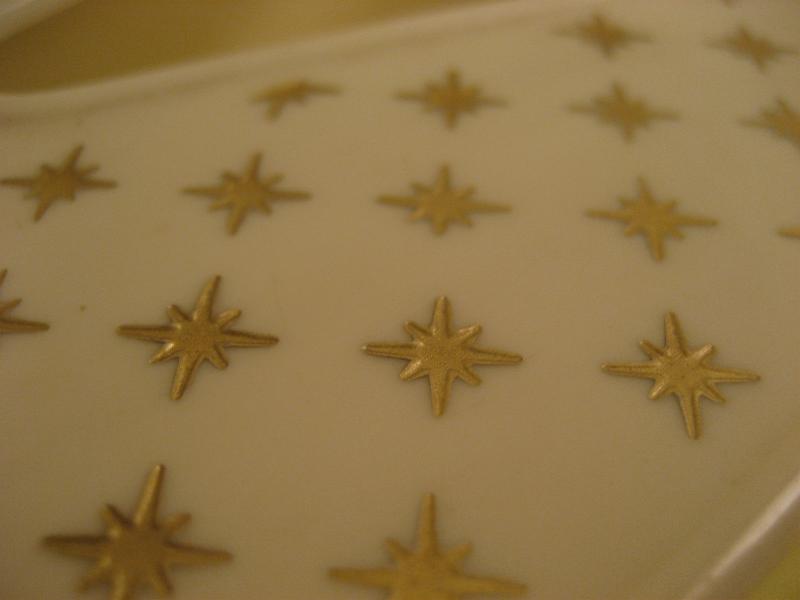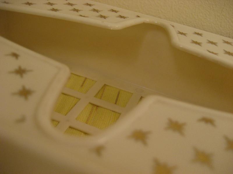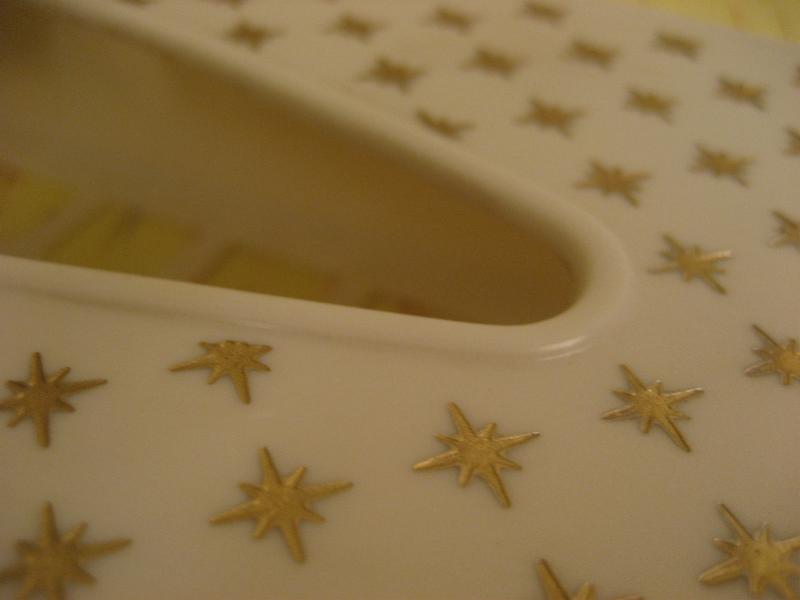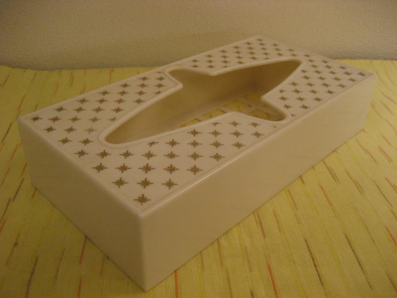 | ビンテージアトミックティッシュケース / 50年代 Rubbermaid, MADE IN USA. クールなゴールドスターバーストプリントの50'sティッシュボックス。取り出し口のアトミックシェイプがクールでGOODなビンテージバニティピース! 底面はメッシュトレーになっています。 |