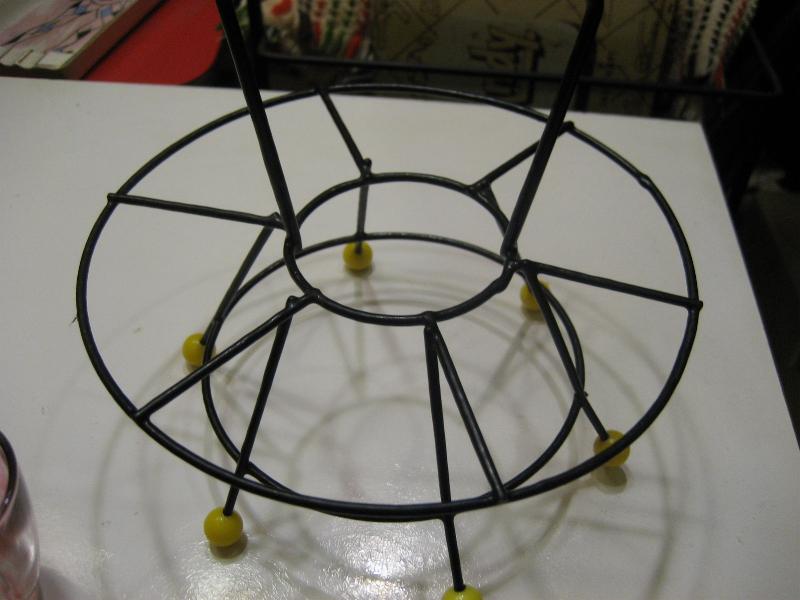 | 特に目立つようなダメージはありませんが、ワイヤーラックに部分的な少しのゆがみが見られます。グラスはカラーガラスの色ムラ(おそらく製造時のもの)がそれぞれ見られます。全体的にきれいで良いビンテージコンディションです。 | |