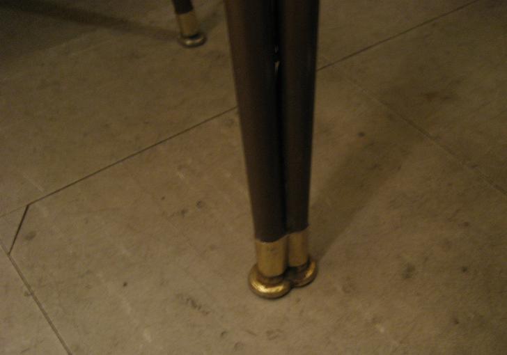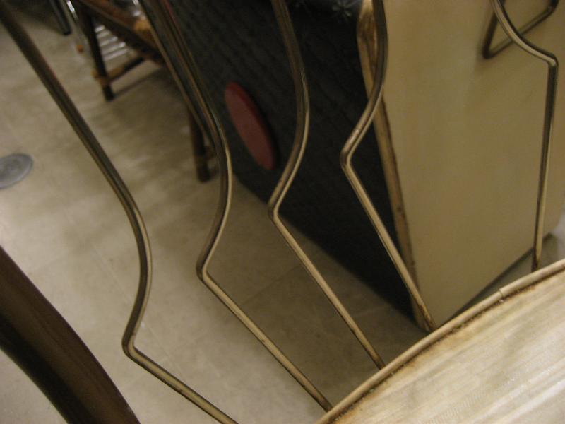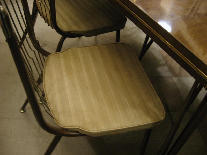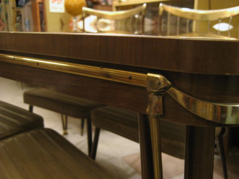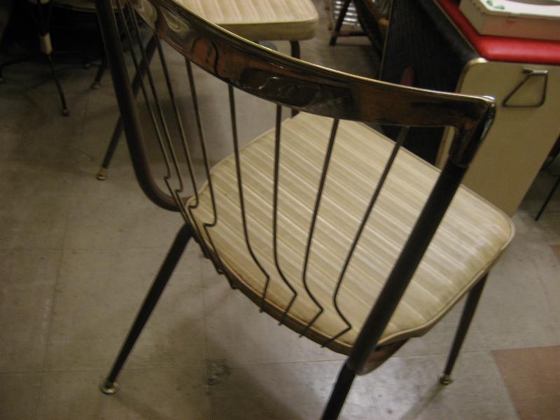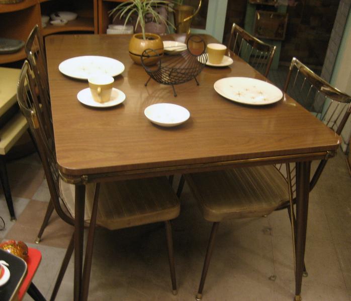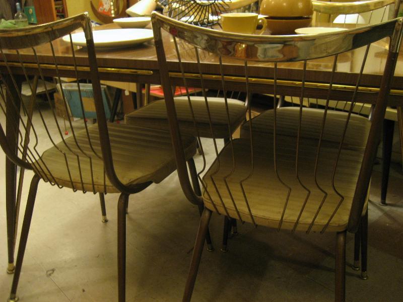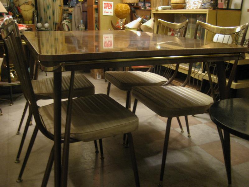 N.Y. USA シックなブラウンウッドにブラウンメタルレッグテーブルとマッチングチェアーのビンテージダイニングセット。テーブルは化粧合板トップにゴールドブラスエッジデコ。チェアーはアイボリーベージュカラーシートにブラウンメタルとゴールドブラスのコンビフレーム。食事やティータイムが楽しくなるクールでGOODなビンテージダイニングピース! |