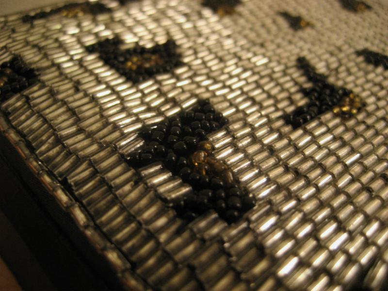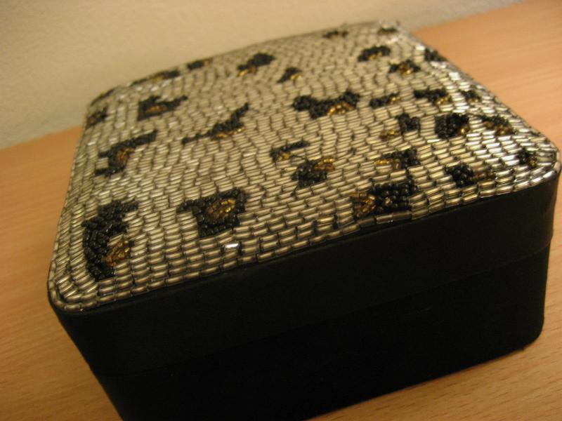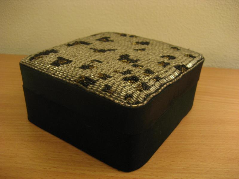 | ビンテージジュエリーボックス / 60-70年代 USA カバートップにメタルビーズとプラスチックビーズでデコレートされたコンパクトドレスアップボックス。インサイドはブラック張り。クールでGOODなビンテージバニティピース! |
