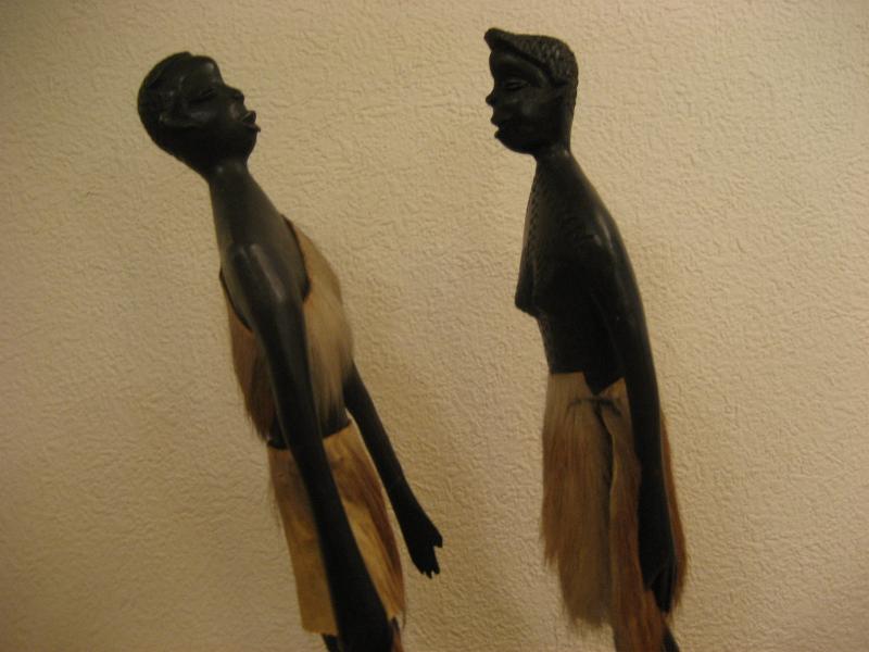 | ペアビンテージアフリカン置物 / 50-60年代 USA. ウッドメイドの男女ペアアフリカン置物。リアルファーをコスチュームに使用した古い工芸品のようなものと思われます。ディスプレイにおススメです。 クールでGOODなビンテージデコレーションピース! |
