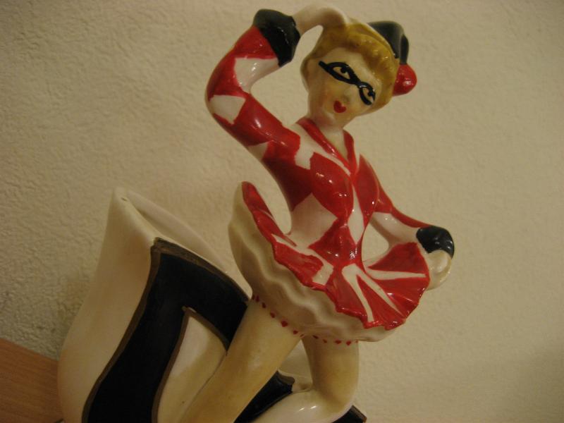 | ビンテージレディハーレクイン置物 / 50年代 USA レアな陶器製プランタータイプのビンテージハーレクインデコ。プランター前面部分がハーレクインマスクデザインになっていて、ボディはセラミックアーツの壁掛けタイプのフォルム。 クールでGOODなビンテージデコレーションピース! |