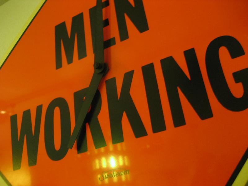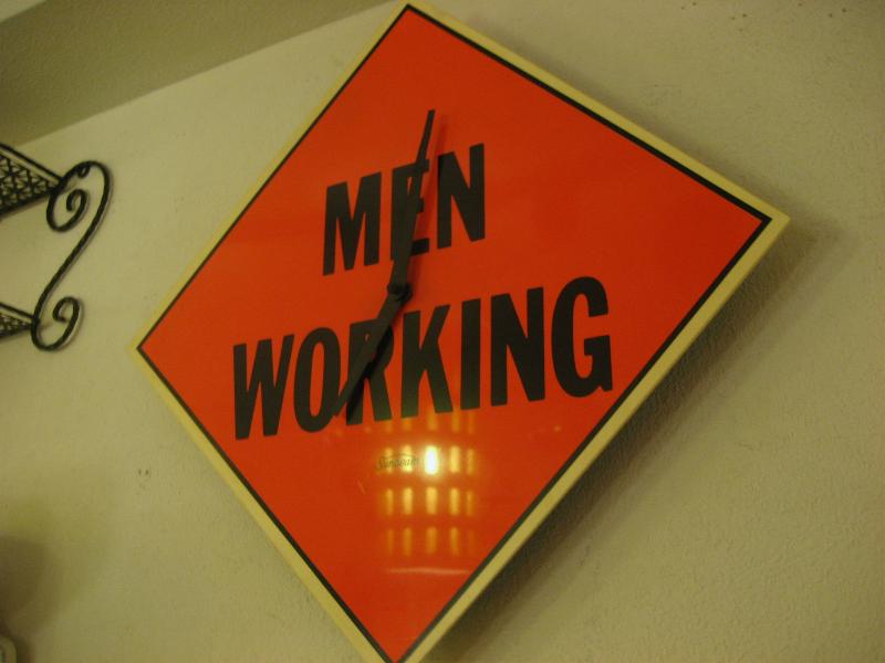 | ビンテージメッセージウォールクロック / 60-70年代 Sunbeam, USA. サンビーム社の文字盤に "MEN WORKING" というメッセージが書かれているビンテージ壁掛け時計です。 メッセージの内容は "男は仕事" とか "働け!" や "工事中" な〜んて意味があるようですが、そんなちょっと男性にはキビシイ? 感じのメッセージ。。。 モダンでGOODなビンテージウォールタイムピース! ムーブメントはオリジナルバッテリー式(単3x1コ使用)ですので時間は正確です。 |