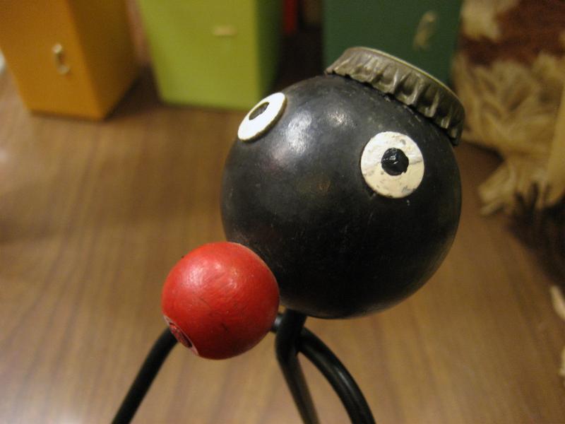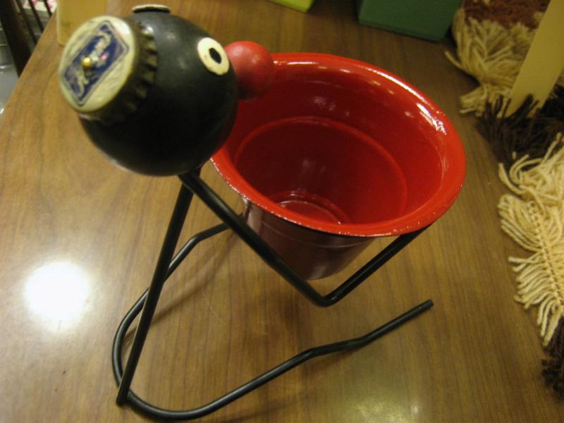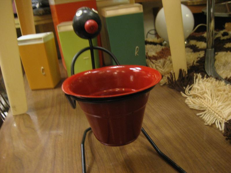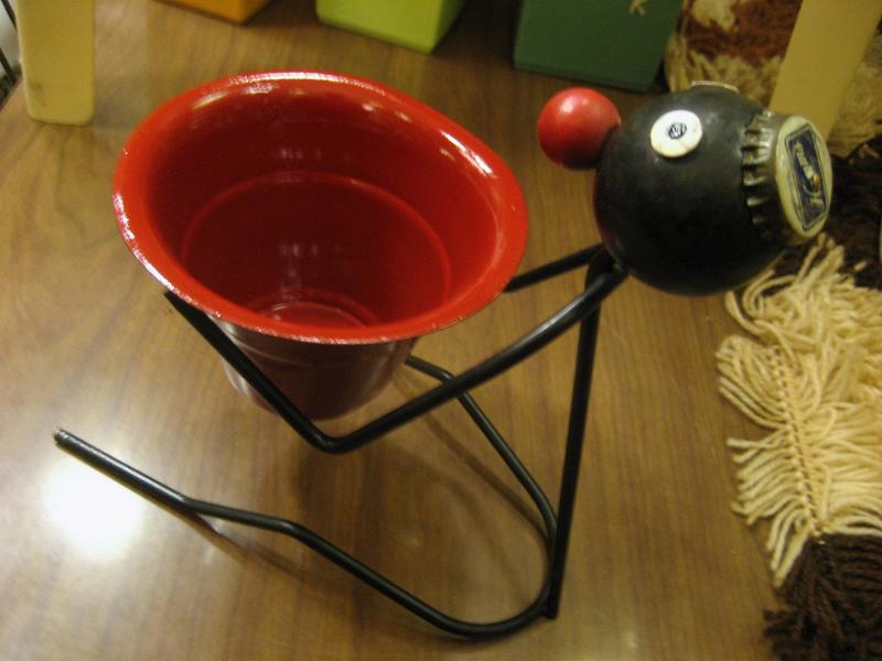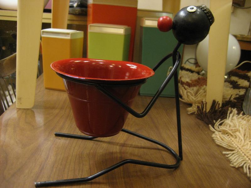| オールドビンテージブラックワイヤーデコ / 40-50年代 USA. ブラックアイアンメイドのレアなビンテージワイヤーデコレーション。レッドペイントされたメタルポットを抱えている置物。頭には王冠の帽子デコ。KEYやコイン、アクセなどの小物入れとしてや、ディスプレイにもおススメです。クールでGOODなビンテージデコレーションピース! |