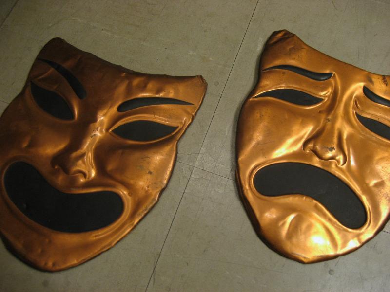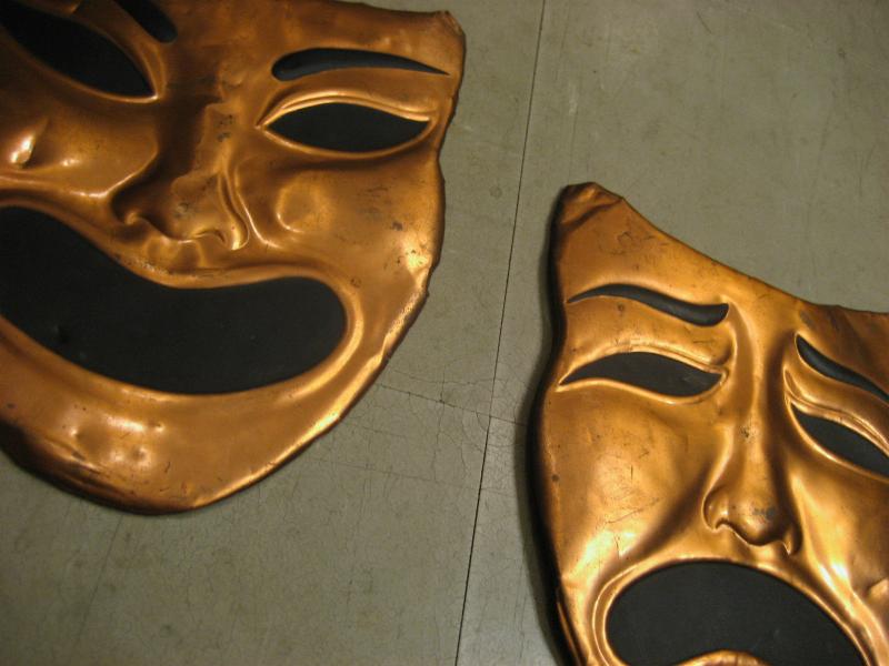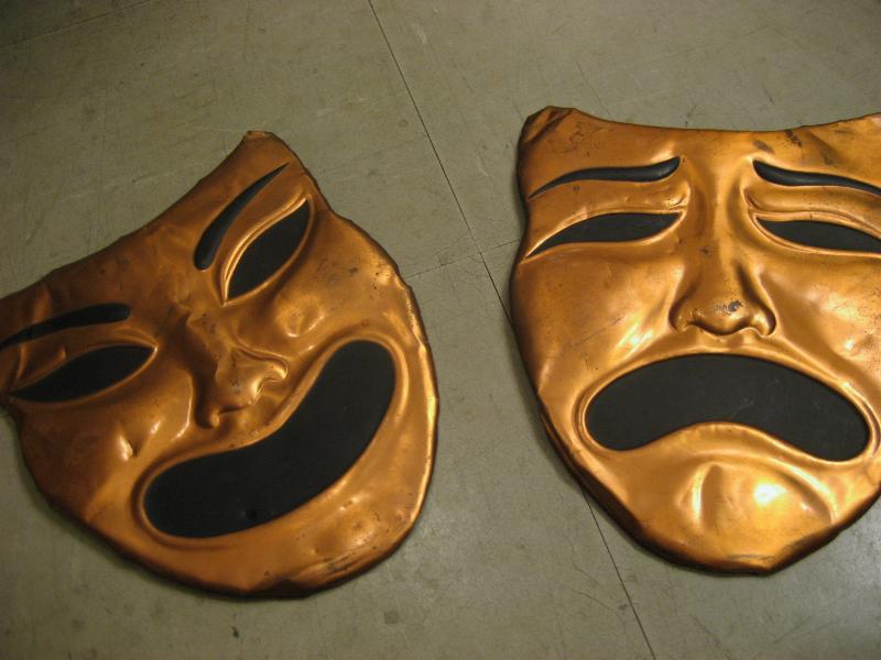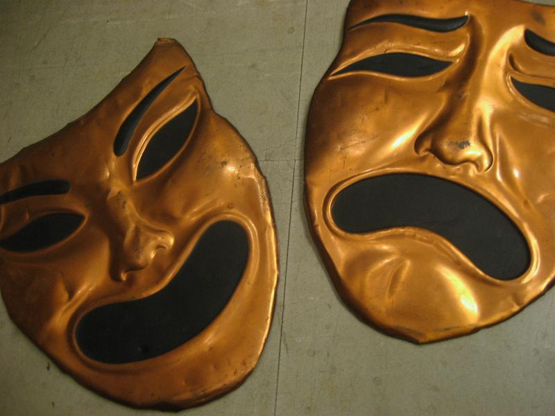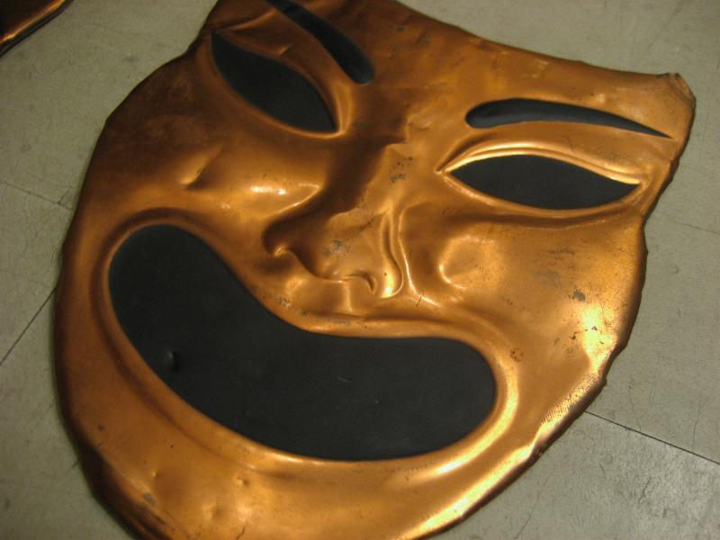 | ビンテージツーフェイスウォールデコ / 40-50年代 USA 銅版クラフトのビンテージツーフェイス壁掛けセット。銅版の裏面からたたき出す加工の泣き笑い顔。クールでGOODなビンテージウォールデコレーションピース! |
