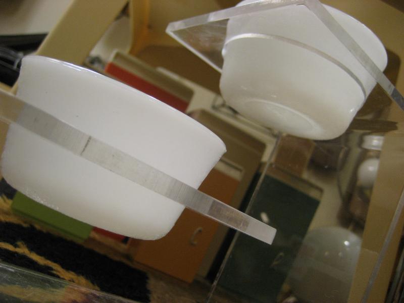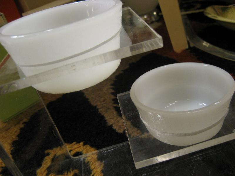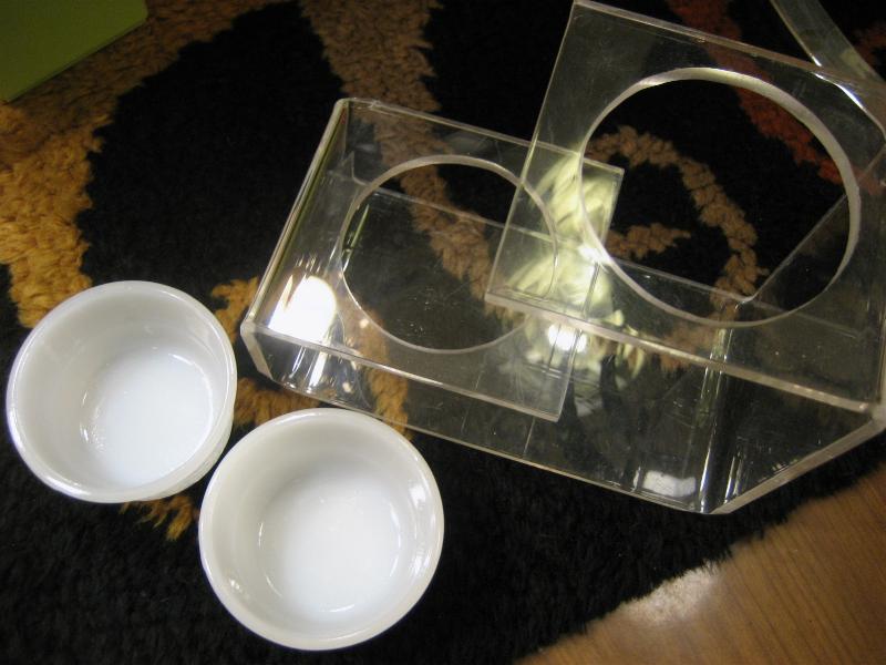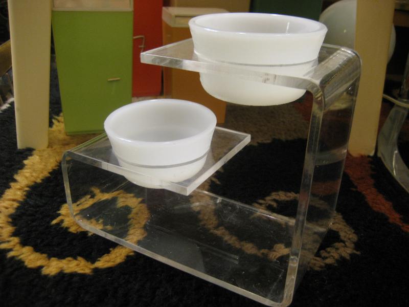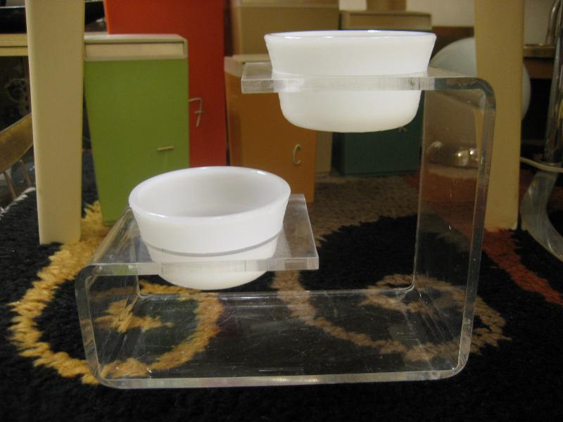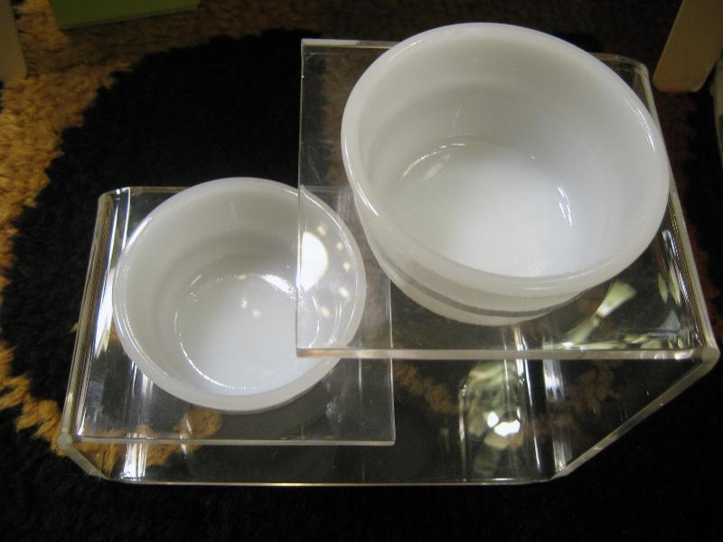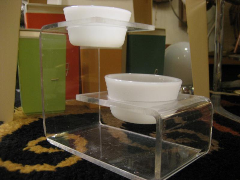 | ビンテージアトミックモダンポットスタンド / 60年代 USA クリアアクリルメイドの段違いスタンドに "Glasbake" のミルクガラスメイドスモールポットが付いたビンテージモダンスタンド。小物やアクセサリー入れやSHOPディスプレイなどにもおススメです!クールでGOODなビンテージコレクティブルピース! |