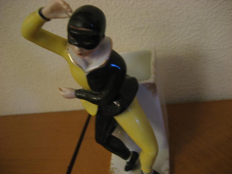 | ビンテージハーレクインデコ / 50年代 USA レアな陶器製プランタータイプのビンテージハーレクインデコ。ブラックとイエローカラーのコスチュームにマスクフェイス。後ろ側はスクエアシェイプのプランターポットになっています。クールでGOODなビンテージデコレーションピース! |