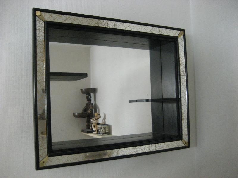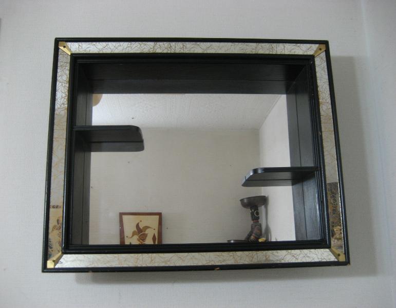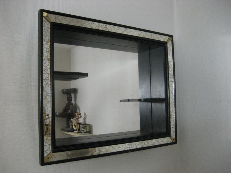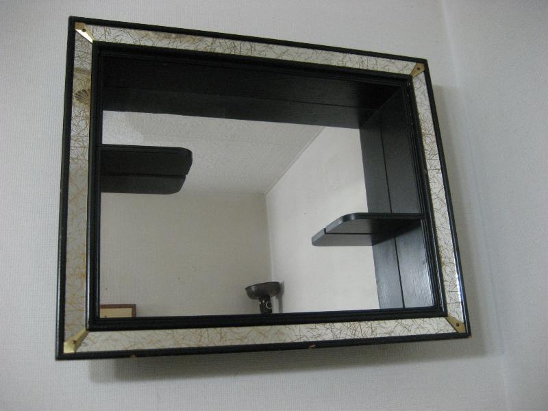 MADE IN USA ミラーフレーム、ミラーバックタイプの小ぶりでレアな壁掛けシャドーボックスシェルフ。柄入りミラーフレームでインサイド段違い飾り棚。置物などのディスプレイにおススメです! クールでGOODなビンテージウォールデコピース! |