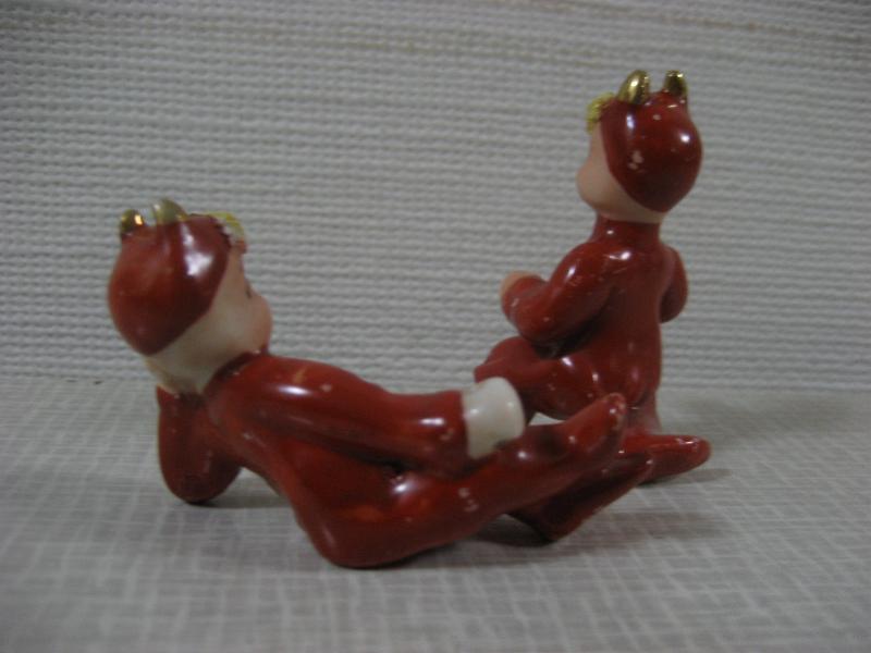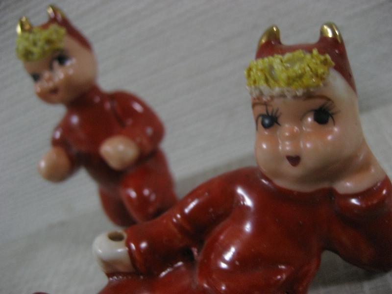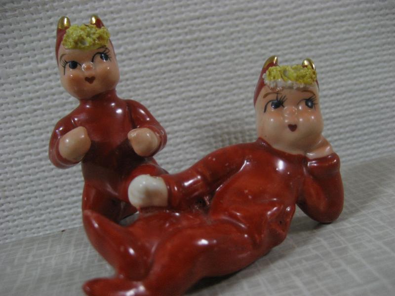 | ビンテージキッズデビルデコセット / 50年代 USA 陶器製のキッズデビル2体セット。ヒザを付いているもの、寝そべっているものの2パターン。ステッカーやマークはございませんが、顔から判断するとおそらくメーカーは"レフトン"のものと思われます。クールでGOODなビンテージデコレーションピース! |