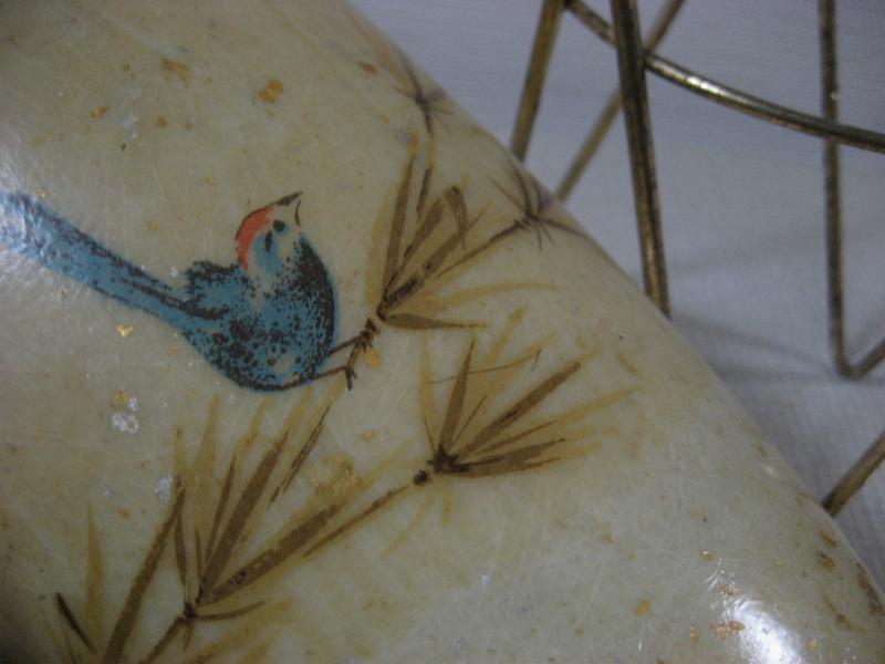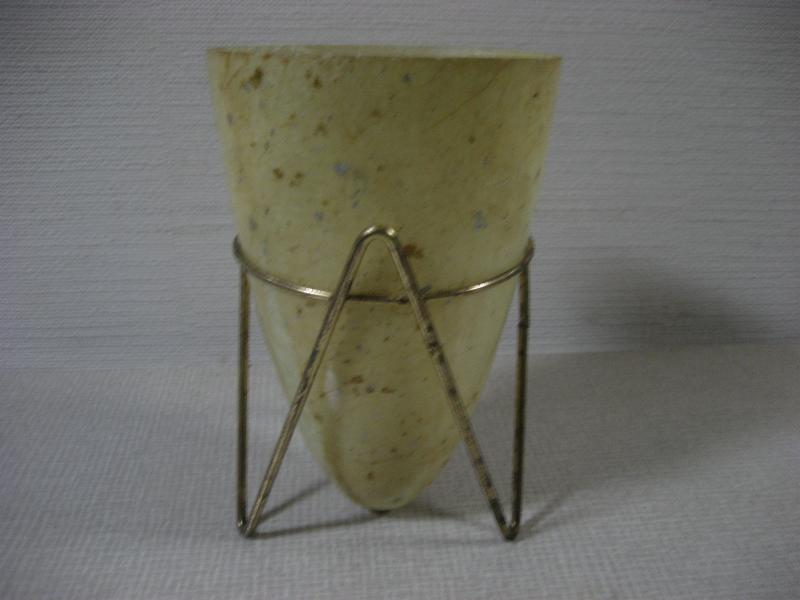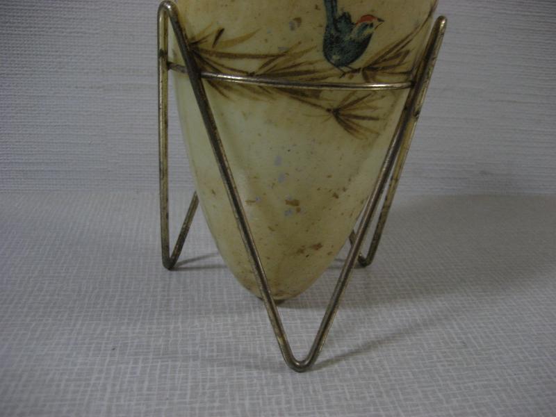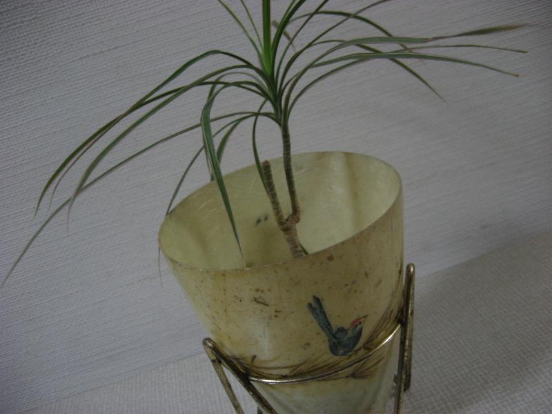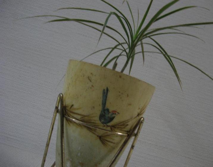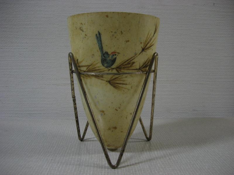| ビンテージファイバーグラスプランター / 50-60年代 USA. アトミックシェイプのレトロなテーブルプランター。バードプリントのファイバーグラスポットにブラスメイドのヘアピンレッグワイヤースタンド。ディスプレイにおススメ! クールでGOODなビンテージアトミックピース! |