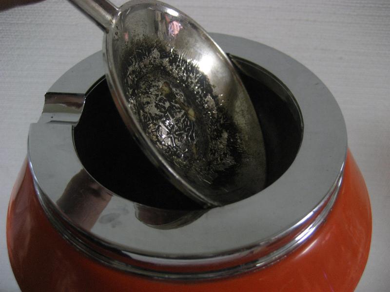 | 特に目立つようなダメージなどはありませんが、ボトム部にヒビワレがあるのと、内側のサビと、多少の小キズやスレ程度は見られます。全体的に良いビンテージコンディションです。 | |