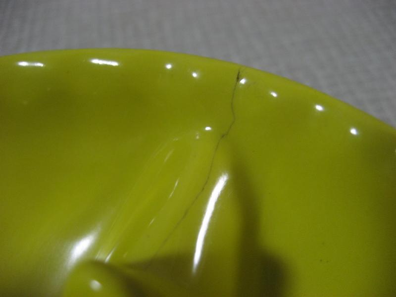 | 特に目立つようなダメージはありませんが、イエローにクラックが見られます(写真参照)。レッドにはヒビやカケ・リペアなどもなくどちらも全体的にきれいで良いビンテージコンディションです。 | |