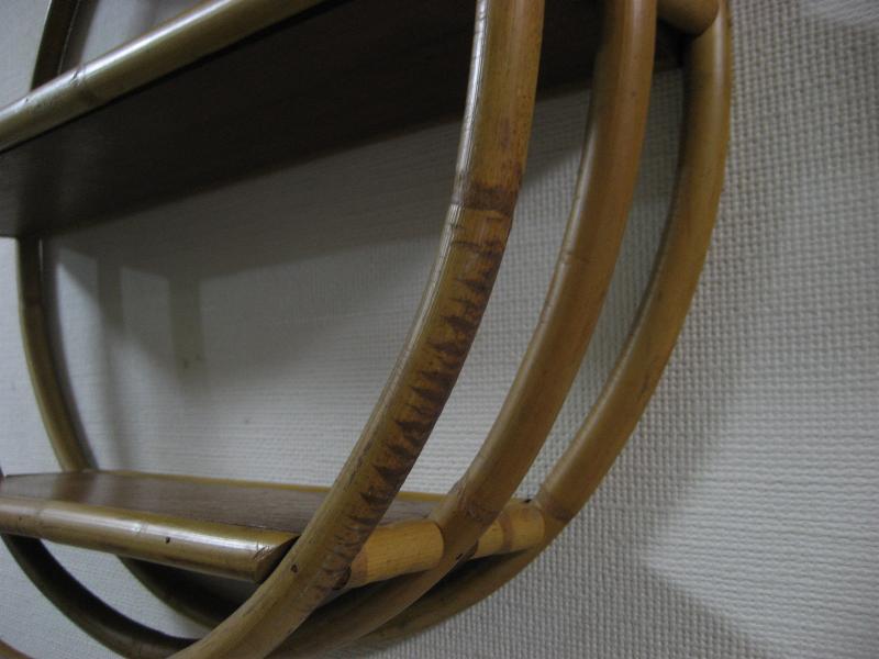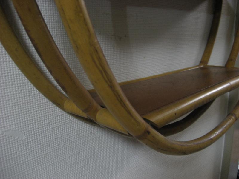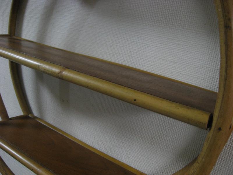 | ビンテージバンブーウォールシェルフ / 40-50年代 USA 3本のラウンドバンブーフレームに3段ウッドシェルフ。ビンテージハワイアン飾り棚。ブラック置物やハワイアンなどディスプレイにおススメです。。。 クールでGOODなビンテージウォールデコレーション! |