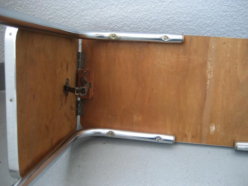 | ビンテージフォールディングサイドテーブルシェルフ / 50-60年代 USA 壁際カウンターテーブルとしてや、コーナー及び、シェルフとしてもオススメのテーブルシェルフ。片側フォールディング(折りたたみ)タイプなので長さを選べて便利です。レッグはクロームフィニッシュ。クールでGOODなビンテージファニシングピース! |