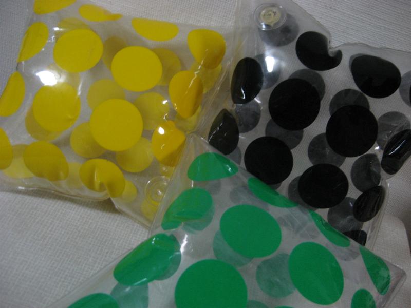USA ビニルメイドのアトミックでモダンな水玉柄デザインのビンテージエアクッション。カラーはイエロー・グリーン・ブラック。夏にプールや海で遊ぶのに使ってもOKですよ。。。クールでGOODなビンテージコレクティブルピース! |