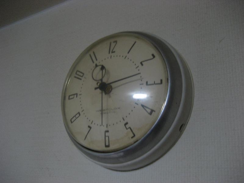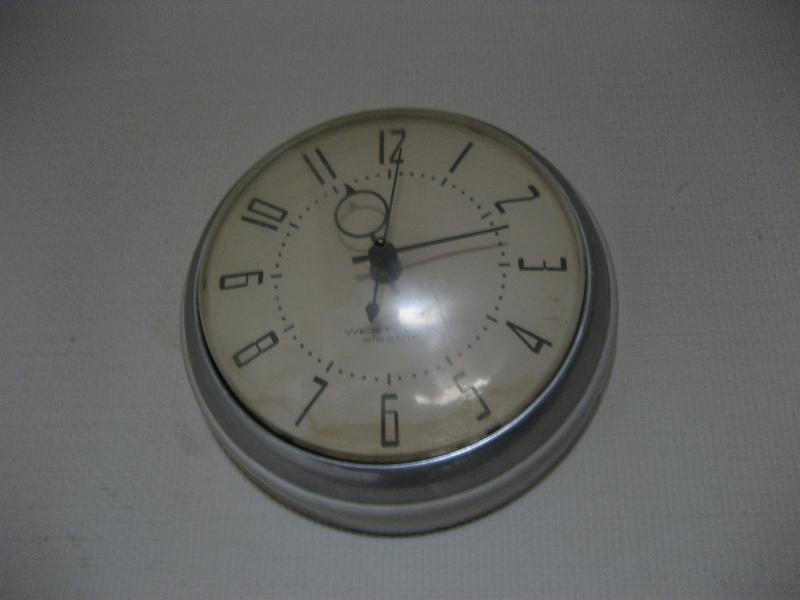 | ビンテージアトミックウォールクロック / 50年代 ウェストクロックス社 MADE IN USA. ドームフロントカバーがクールな壁掛け時計。メタルフレームで文字盤の数字が外側に対してすべて垂直に配置されているのが特徴。数字体も独特な50's調! クールでGOODなビンテージウォールタイムピース! ムーブメントはバッテリー式(単3x1コ使用)に交換済みですので時間は正確です。 |