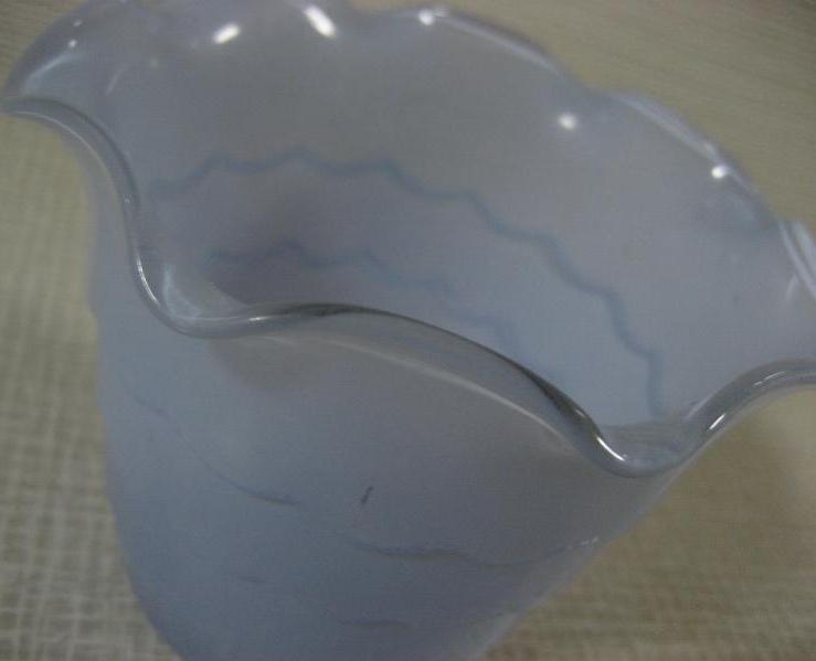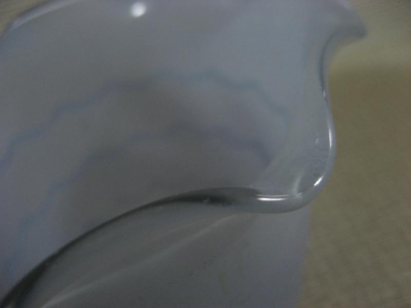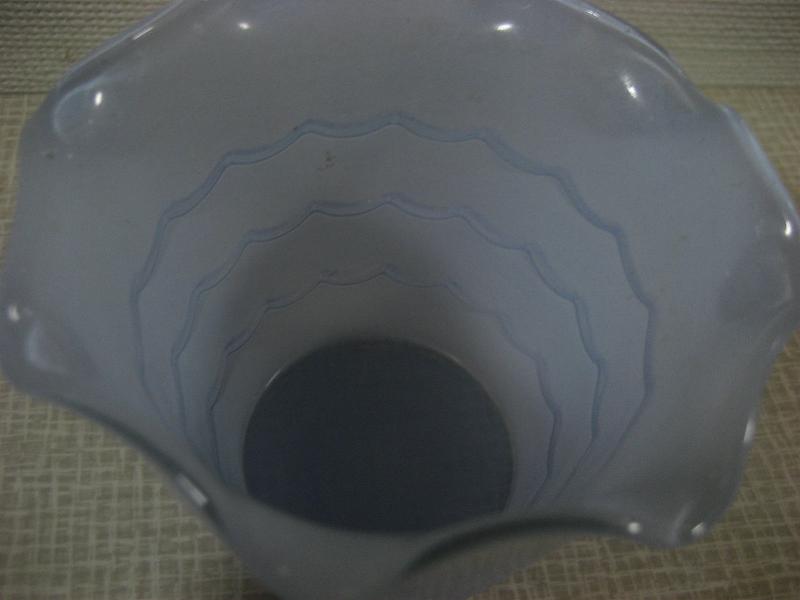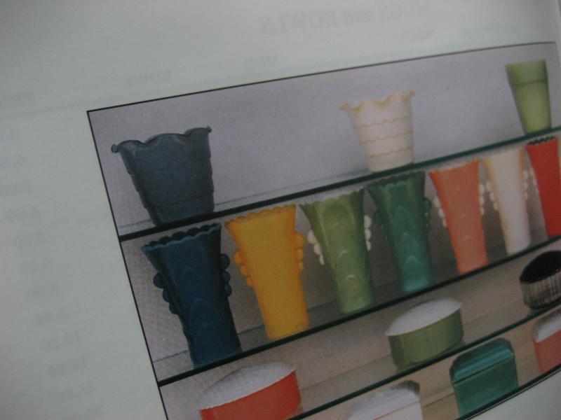 | ビンテージファイヤーキッグフラワーポット / 40年代〜 ANCHOR HOCKING "NOVELTIES" USA "Ruffled Rim"というフチが波打っているタイプのガラスメイドのレアなフラワーポット。写真のように"Fire King"のガイドブックにも掲載されていて"NOVELTIES"というとっても珍しいレアシリーズ。クールでGOODなビンテージコレクティブルピース! |