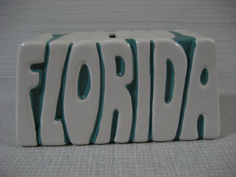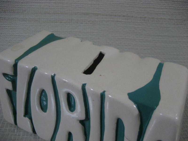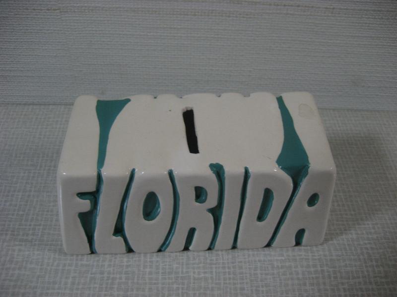 USA. 陶器製のいわゆる貯金箱。"FLORIDA"とデザインされた置物タイプで80年代にフロリダのお土産品として販売されていたものと思われます。レトロでGOODなビンテージコレクティブルピース! |