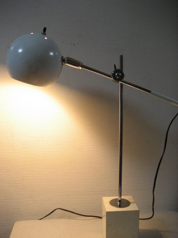 | ビンテージアトミックモダンランプ / 60-70年代 USA アトミックシェイプなビンテージデスクランプ。ベースはスクエアウッドベース。アームとポールのクロスしている部分のツマミで調整。ポールは42cmの高さ調整、アームは19cmの長さ調整がOK。そして、シェードはネック部分が首振り・回転するのでかなり幅広いライティングポジションを表現できます。クールでGOODなビンテージライティングピース! 電源は家庭用コンセント対応コードで、スイッチはシェードに付いていてロータリータイプ。 |