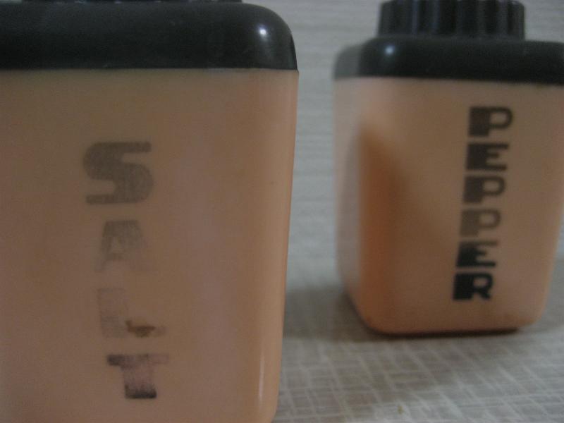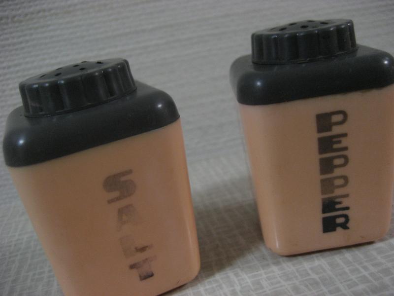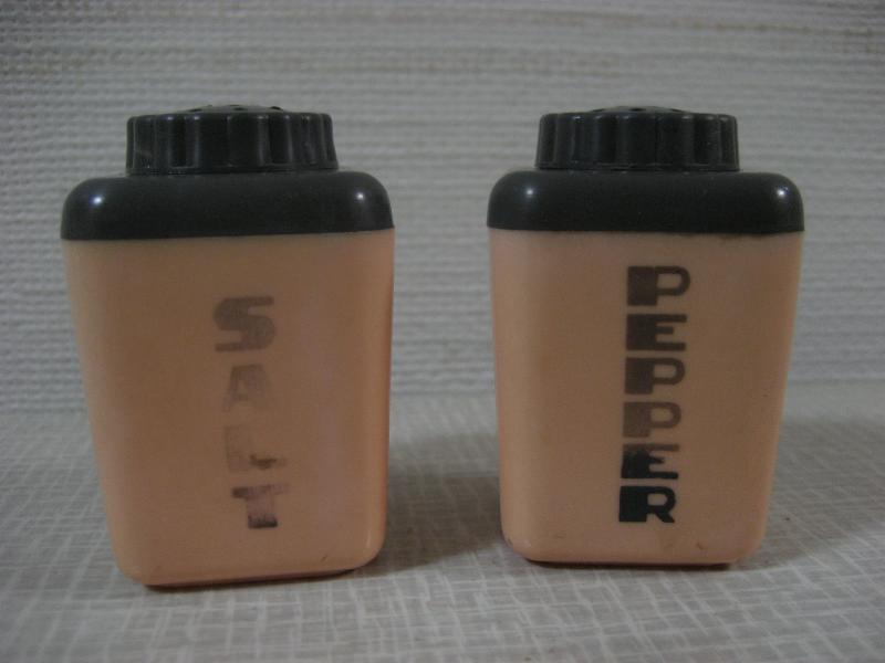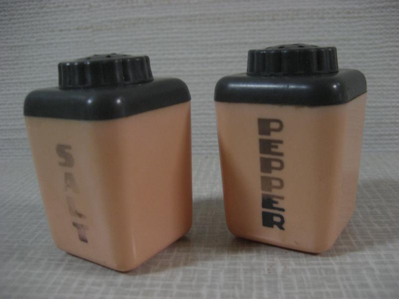 MADE IN USA. ピンクボディにダークグレートップのクールなグレピンカラーS&P。ダイナーやドライブインなどで使用されていたものでしょうか。。。側面の字体も50’sな感じがでています。クールでGOODなビンテージコレクティブルピース! |