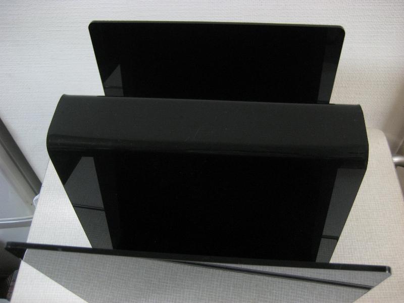 | ビンテージモダンアクリルマガジンラック / 70-80年代 ブラックベースのアクリル成型マガジンラック。 "W" 型のデザインでしょうか。。。チェアやソファサイド、テーブルサイドなどにクールでGOODなビンテージフロアピース! |