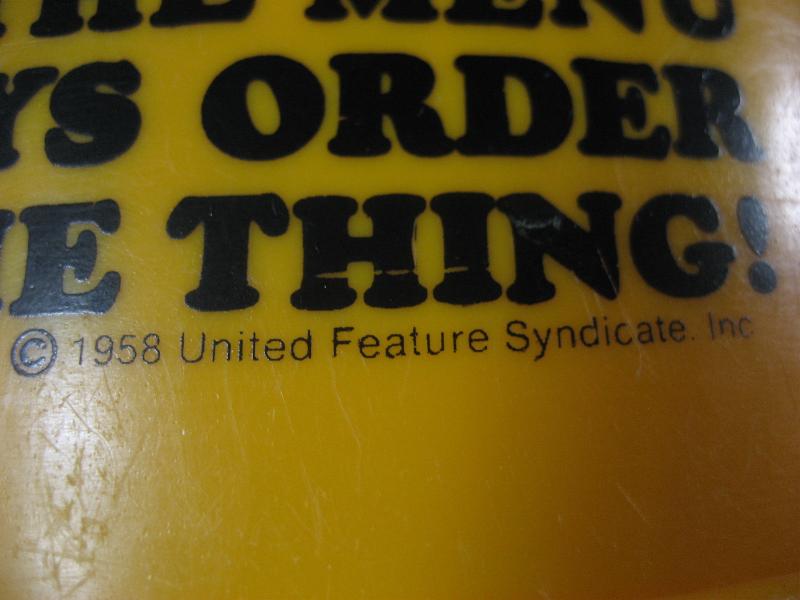 SYNDICATE プラスチックメイドのビンテージドッグディッシュ。カラーはイエローで、3種類のスタイル&メッセージ入り。。。 レアでとってもキュートでGOODなビンテージディスプレイ&コレクティブルピース! |