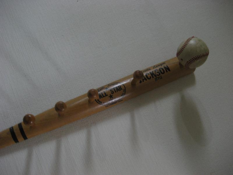 | ビンテージベースボールバットウォールハンガーフック / 60-70年代 USA 野球のバットデザインのウォールハンガー。5個のフックで、内1個は硬式ボール使用。クールでGOODなビンテージウォールピース! |