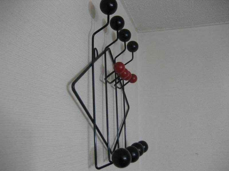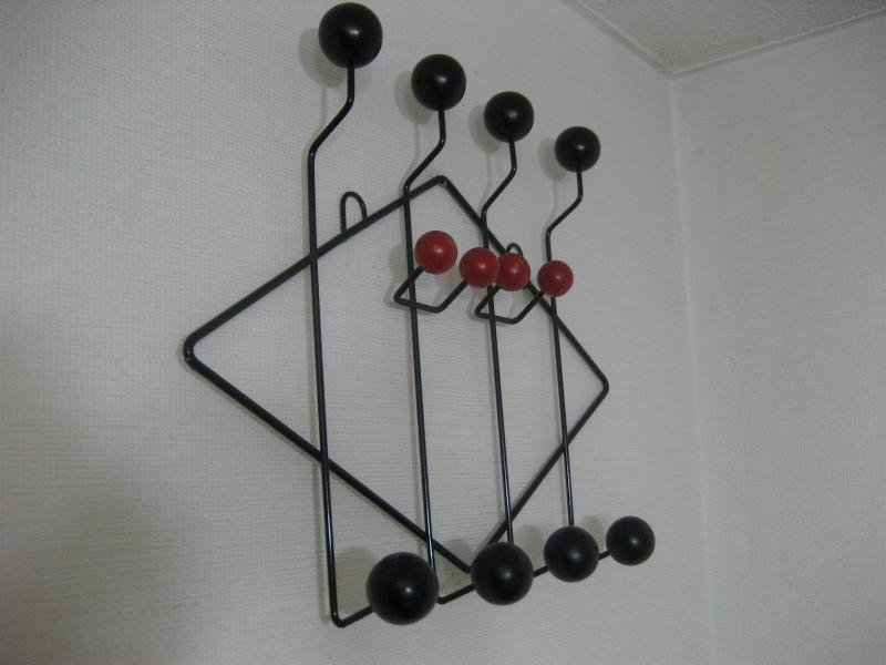 | ビンテージアイアンウォールハンガー / 70年代 USA ハットやキャップなど帽子関係の壁掛けハンガー。ブラックアイアンにレッドカラーウッドボールアクセント。 ハットはもちろん、コートやウェアなどのハンギングにクールでGOODなビンテージウォールピース! |