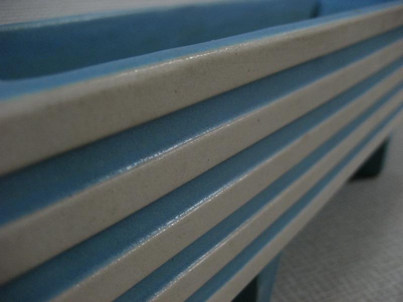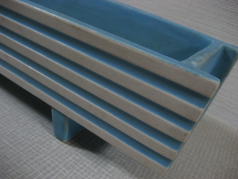 | ビンテージアトミックモダンプランター / 60-70年代 USA 陶器製のアトミックシェイプなビンテージプランター。スクエアシェイプに足付きタイプ、カラーはターコイズブルーにオフホワイトのストライプ。テーブルトップやシェルフトップにおススメ! クールでGOODなビンテージデコレーションピース! |