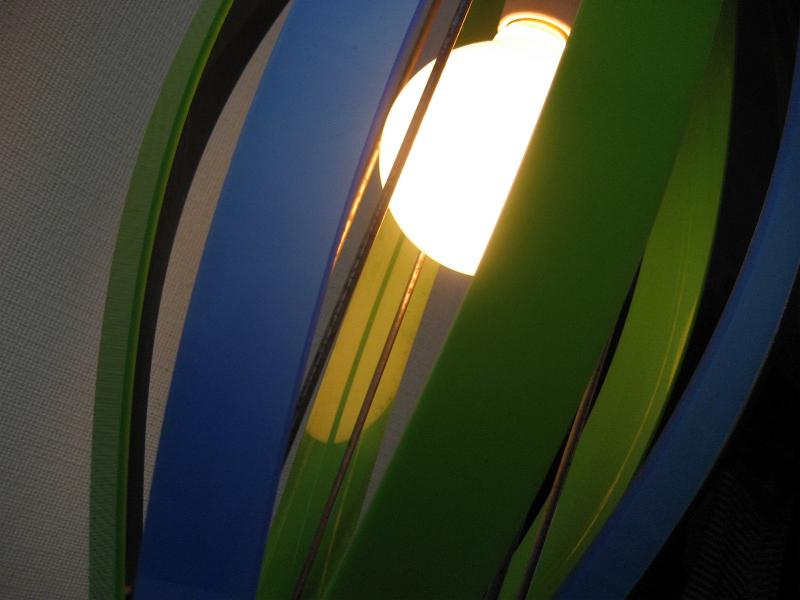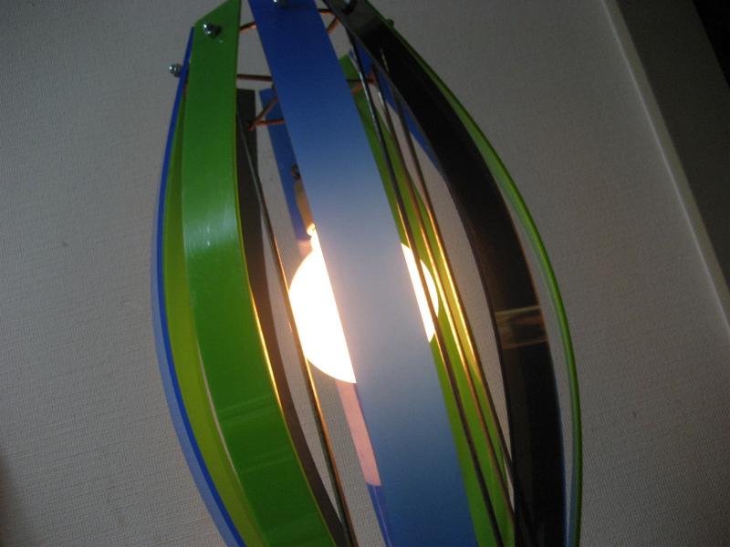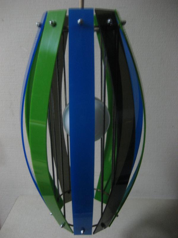 | ビンテージアトミックペンダントランプ / 50-60年代 USA. ワイヤーフレームにカラーアクリルプレートシェードのビンテージシーリングランプ。プレートのカラーはブルー・グリーン・スモークグレー。バルブはボール球使用。 クールでGOODなビンテージライティングピース! 電源は家庭用引掛けシーリングタイプに交換してありますのですぐに設置可能です。 ※天井シーリングカバーは現行品です |