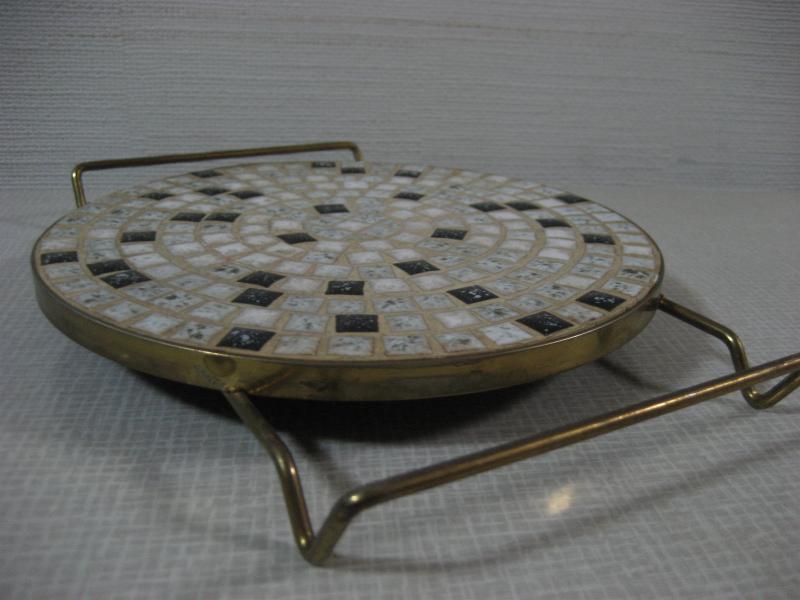 | ビンテージモザイクポットスタンド / 50-60年代 USA モザイクタイルを敷き詰めたラウンドプレートにゴールドブラスフレームのビンテージポットスタンド。ディスプレイにもおススメです! クールでGOODなビンテージコレクティブルピース! |