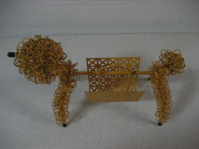 | ビンテージワイヤープードルナプキンホルダー / 50年代 USA. ボディはワイヤー&コイル、ホルダー部分はメッシュパネルのビンテージナプキンホルダー。プードルシェイプで足先とハナにキャップアクセント。ディスプレイ性の高いクールでGOODなビンテージデコレーションピース! |