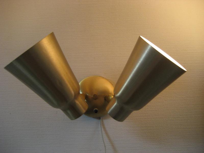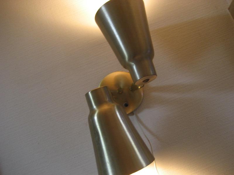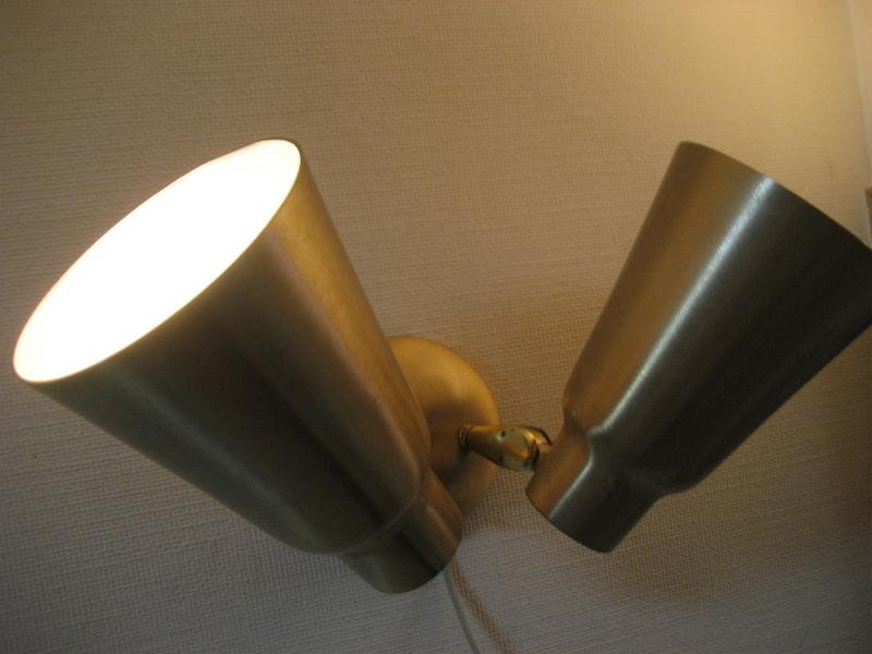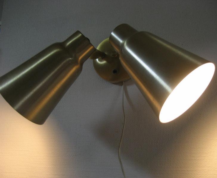 | ビンテージダブルシェードウォールランプ / 50-60年代 USA ダブルスポットタイプの壁掛けランプです。各シェードは回転及びネック可動なので色々なポジションのセッティングがOK。クールでGOODなウォールライティングピース! 電源は家庭用コンセント対応コード。スイッチはウォールマウントベースに付いていてプッシュ式です。 |