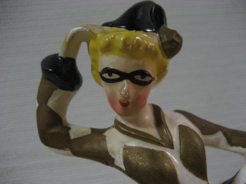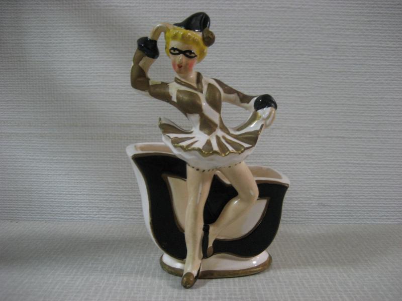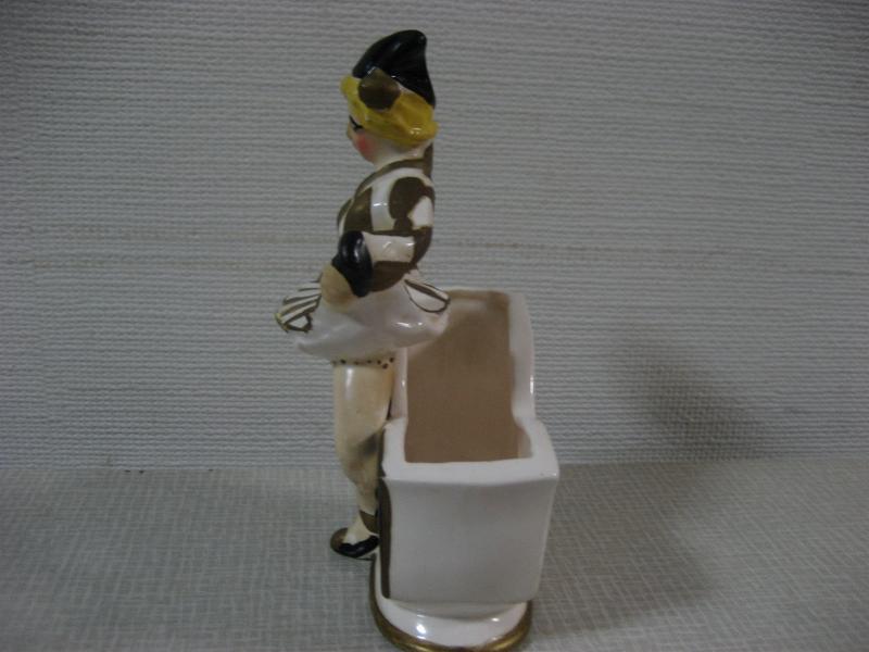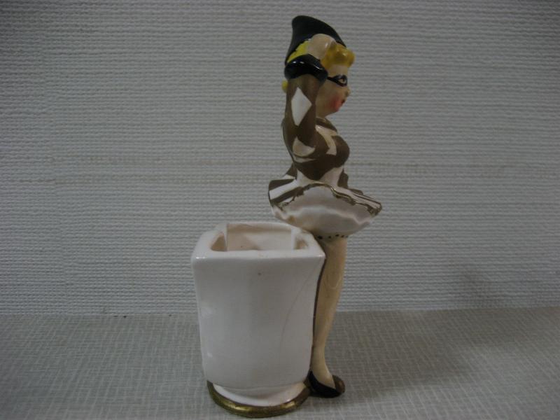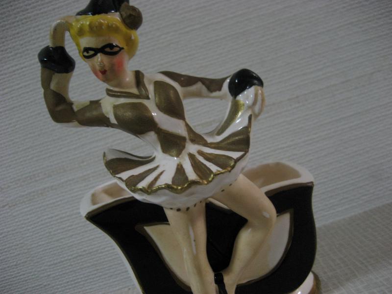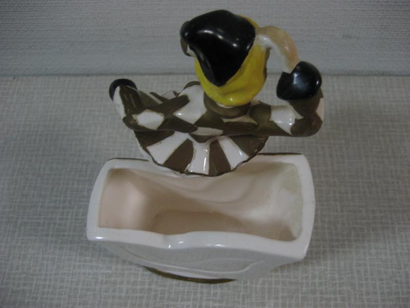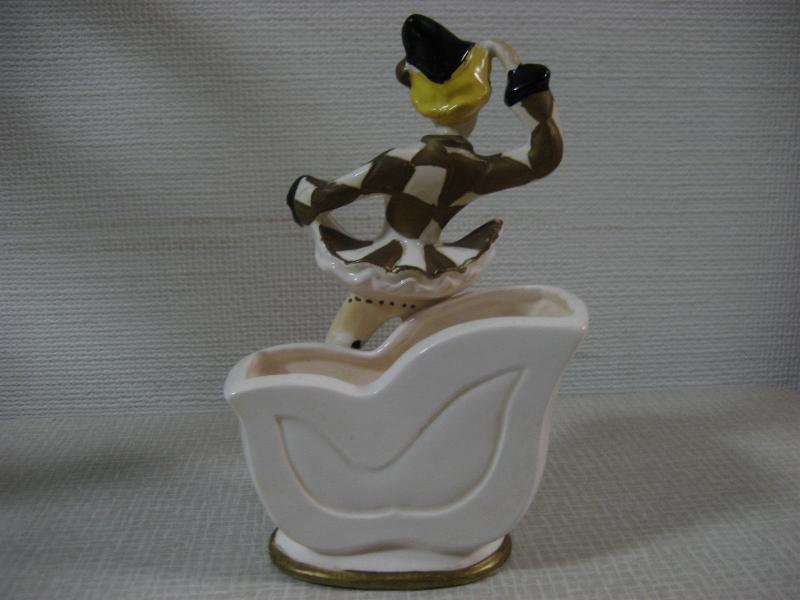 | ビンテージハーレクインダンサー置物 / 50年代 USA レアな陶器製でバックにプランターポットが付いたタイプの50'sデコ。足元のプランター前面部分はハーレクインマスクをモチーフにデザインされていて、ダンサー本体は"セラミックアーツ"の壁掛けタイプデザインに近いクォリティ。。。。 クールでGOODなビンテージデコレーションピース! |