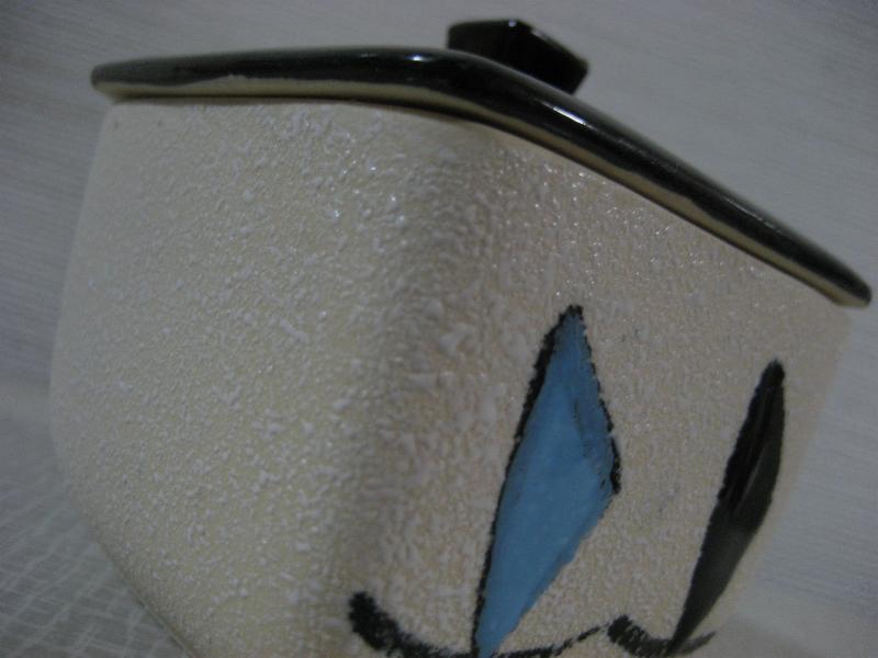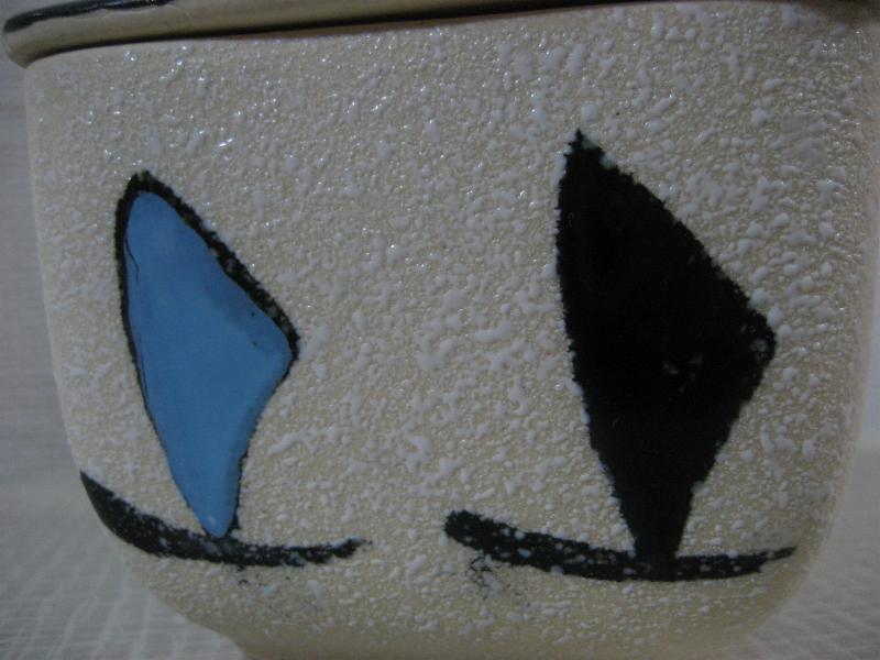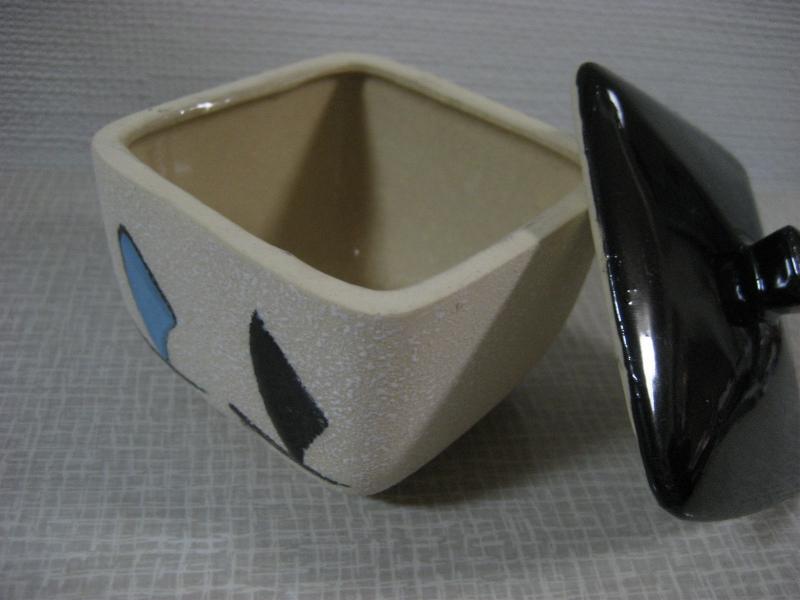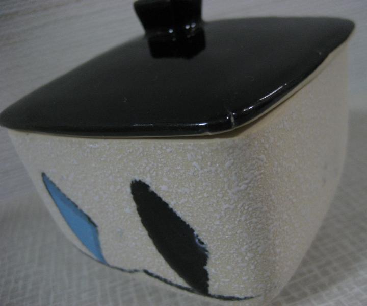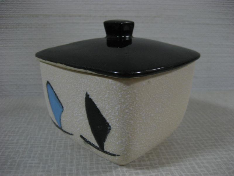 | ビンテージアトミックモダンディッシュ / 50-60年代 USA カバーディッシュタイプのビンテージボックス。陶器製でオフホワイトボディにブラックカバー。絵柄はヨットでしょうか。。。? クールでGOODなビンテージテーブルピース! |