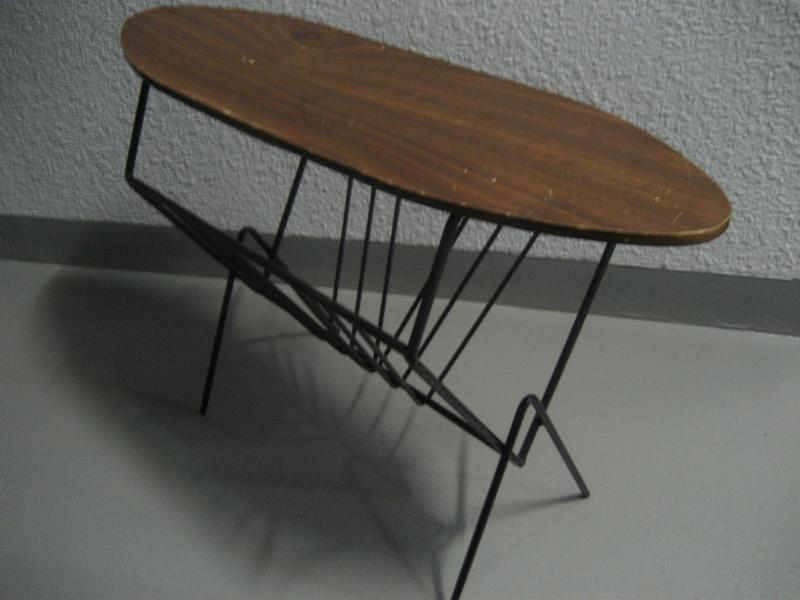 | ビンテージマガジンラックテーブル / 50-60年代 USA. マガジンラックが下に付いたビンテージサイドテーブル。サーフボードシェイプのトップ天板で、カラーはダークブラウンにブラックアイアンラック&レッグ。チェアやソファサイド、コーナーテーブルなどにオススメです。。。 クールでGOODなビンテージフロアピース! |
