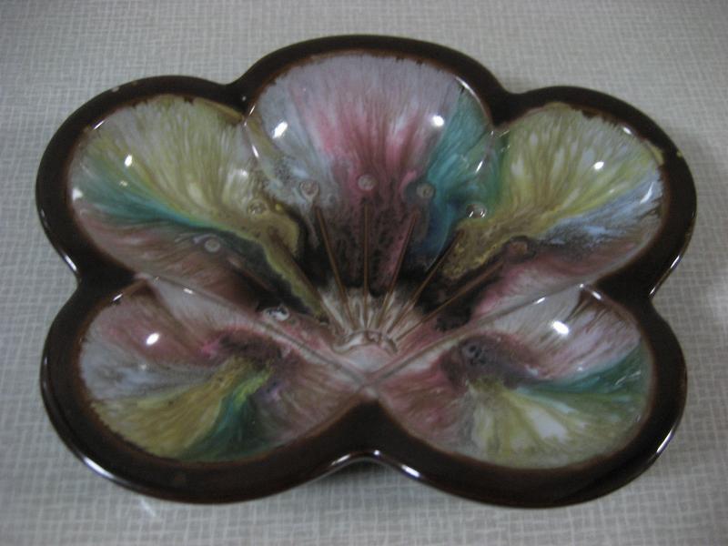 | ビンテージアトミックトレイ / 50-60年代 USA. レインボーマルチカラーで孔雀をイメージした雰囲気の陶器製クールなアトミックトレー。テーブルやシェルフのデコレーションにもおススメです! クールでGOODなビンテージテーブルピース。 |
