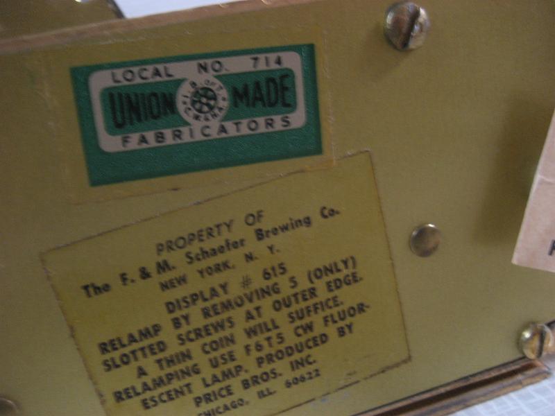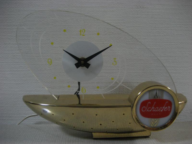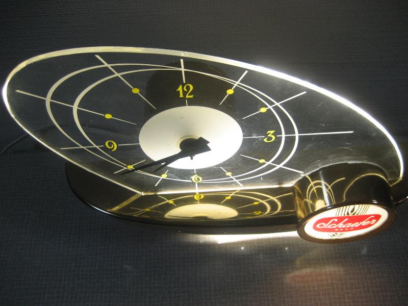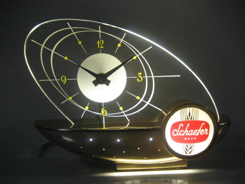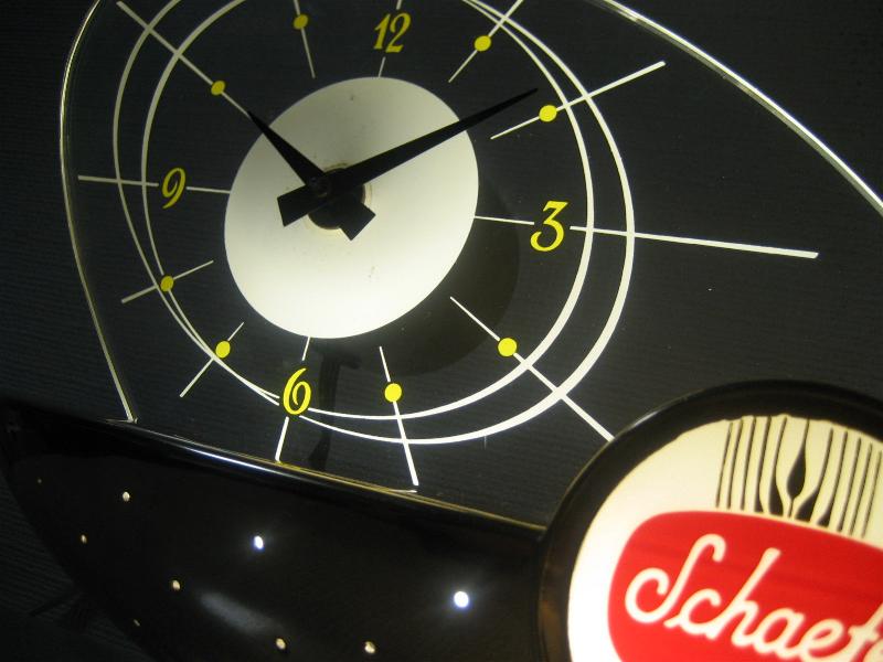 | ビンテージライトアップサインクロック / 50年代 Schaefer Beer, USA. ビールメーカー"Schaefer Beer"のレアな広告用BARランプクロック。リカーショップやBARなどのレジスターサイドに置かれていたアド用クロック。ずっしりとしたメタルベースにアトミックなブーメランシェイプの文字盤。ライトアップしたとき、文字盤に広がる明かりが最高! クールでGOODなビンテージミッドセンチュリーピース! 電源は家庭用コンセント対応コード。ライトアップ用スイッチはベース裏面にツマミがあり、PUSHで点灯、PULLで消灯します。 ◆時計ムーブメントは裏側ムーブメントケースに入らないためと、外観の雰囲気が変わってしまうのであえて交換しておりません。そのため50Hz地域(主に東日本)では時間が正確ではありませんのでご了承ください。 |