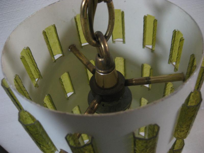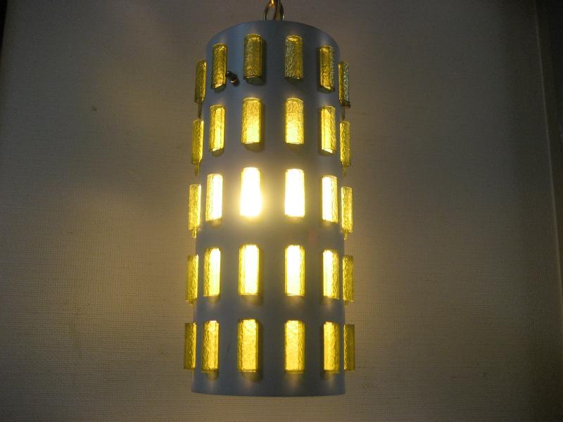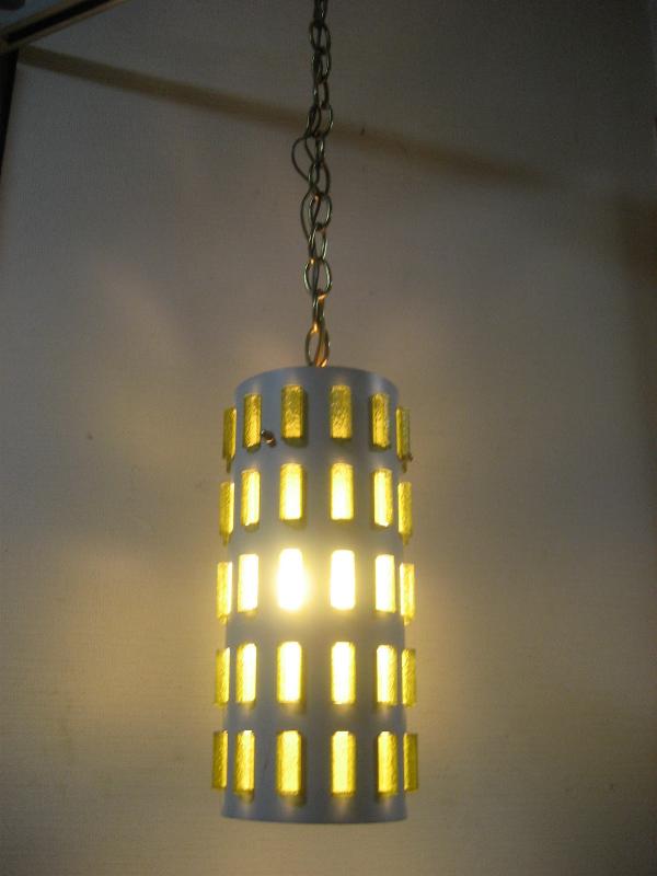 | ビンテージアトミックペンダントランプ / 60年代 USA メタルメイドのシリンダーシェードにアクリルパネルデコのビンテージペンダントランプ。アクリルパネルから飛び出す明かりが独特な雰囲気を演出するミッドセンチュリーなシーリングランプ。クールでGOODなビンテージライティングピース! 電源は引っ掛けシーリングに交換済みですのですぐに設置可能です。 |
