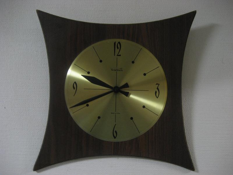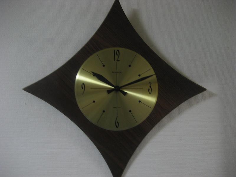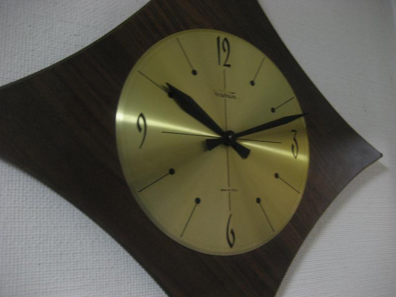 | ビンテージウォールクロック / 60年代 Verichron, MADE IN USA. ウッドメイドフレームのビンテージ壁掛け時計。文字盤はブラスゴールドパネルでブラックインデックス&ハンド。クールでGOODなビンテージウォールタイムピース! ムーブメントはバッテリータイプ(単3x1個使用)です。 ◇アトミックシェイプなスターフォルムとアトミックスクエアフォルムの2タイプシルエットが楽しめます(写真参照) <但し、ムーブメント及び文字盤ごと回転移動させる必要があります> |